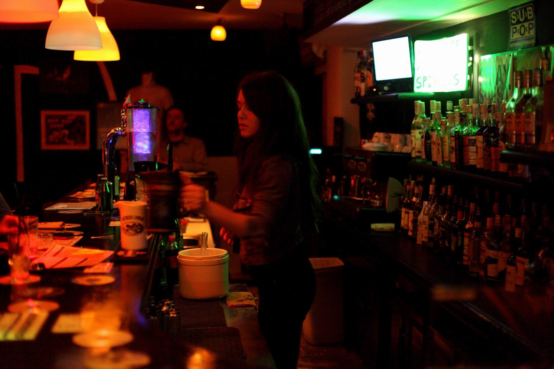 Έριξα μια ματιά στον κατάλογο. Είχα ήδη ακούσει ότι τα ποτά είναι φθηνά αλλά δεν περίμενα πόσο ή ότι στην πίσω σελίδα υπάρχουν συνδυασμοί ποτών-τιμών. Ξεκινούν από 3,5€ και όσο περισσότερα πίνει κάποιος, τόσο μειώνεται η τιμή. Όσον αφορά στα ποτά που στοιχίζουν την ελάχιστη τιμή, με 10€ μπορεί κανείς να πιει τρία, με 15€ πάει στα πέντε και άμα είναι τόσο δυνατό ποτήρι, με 18,5€ πίνει επτά και με λιγότερο από 20€, φτάνει τα οχτώ. Αν πάλι θέλει παραπάνω από οκτώ, καλό είναι να ξεκινήσει τους συνδυασμούς από την αρχή. Με απλά μαθηματικά συνεπώς, καταλήγει να πληρώνει για ένα ποτό, κάτι λιγότερο από 2,5€.