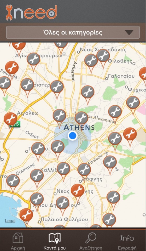 Υδραυλικοί, ψυκτικοί κλιματισμού, ηλεκτρολόγοι, τεχνικοί καυστήρων, τεχνικοί ψυγείων – κουζίνων, τεχνικοί ασανσέρ, τεχνίτες ξύλου, αποφράξεις, απολυμάνσεις, μονώσεις, τέντες- συστήματα σκίασης, τζαμάδες, κλειδαράδες, τεχνικοί υπολογιστών είναι μερικές από τις κατηγορίες που καλύπτει. «Περιλαμβάνει ένα πλήρες και ενημερωμένο δίκτυο επαγγελματιών (για την Αθήνα) με τις πιο χρήσιμες ειδικότητες για το σπίτι ή το γραφείο. Υπάρχουν και τεχνίτες που προσφέρουν ακόμα και 24ωρη εξυπηρέτηση», λέει στη Popaganda ο υπεύθυνος της εφαρμογής Γιώργος Τσιουρής. Για τον ίδιο το iNeed ήταν ένα στοίχημα μια και για να δημιουγήσει την πλατφόρμα εγκατέλειψε την προηγούμενη του δουλειά. «Ασχολούμουν με το εμπόριο σε τεχνικά επαγγέλματα. Έτσι, άρχισα να αντιλαμβάνομαι ποιες ανάγκες υπάρχουν και μου ήρθε η ιδέα να φτιάξω μία πλατφόρμα όπου ο χρήστης θα μπορεί να βρει ανά πάσα ώρα και στιγμή τον τεχνικό που χρειάζεται. Σε όλο αυτό με οδήγησε λίγο και το Taxibeat», λέει.