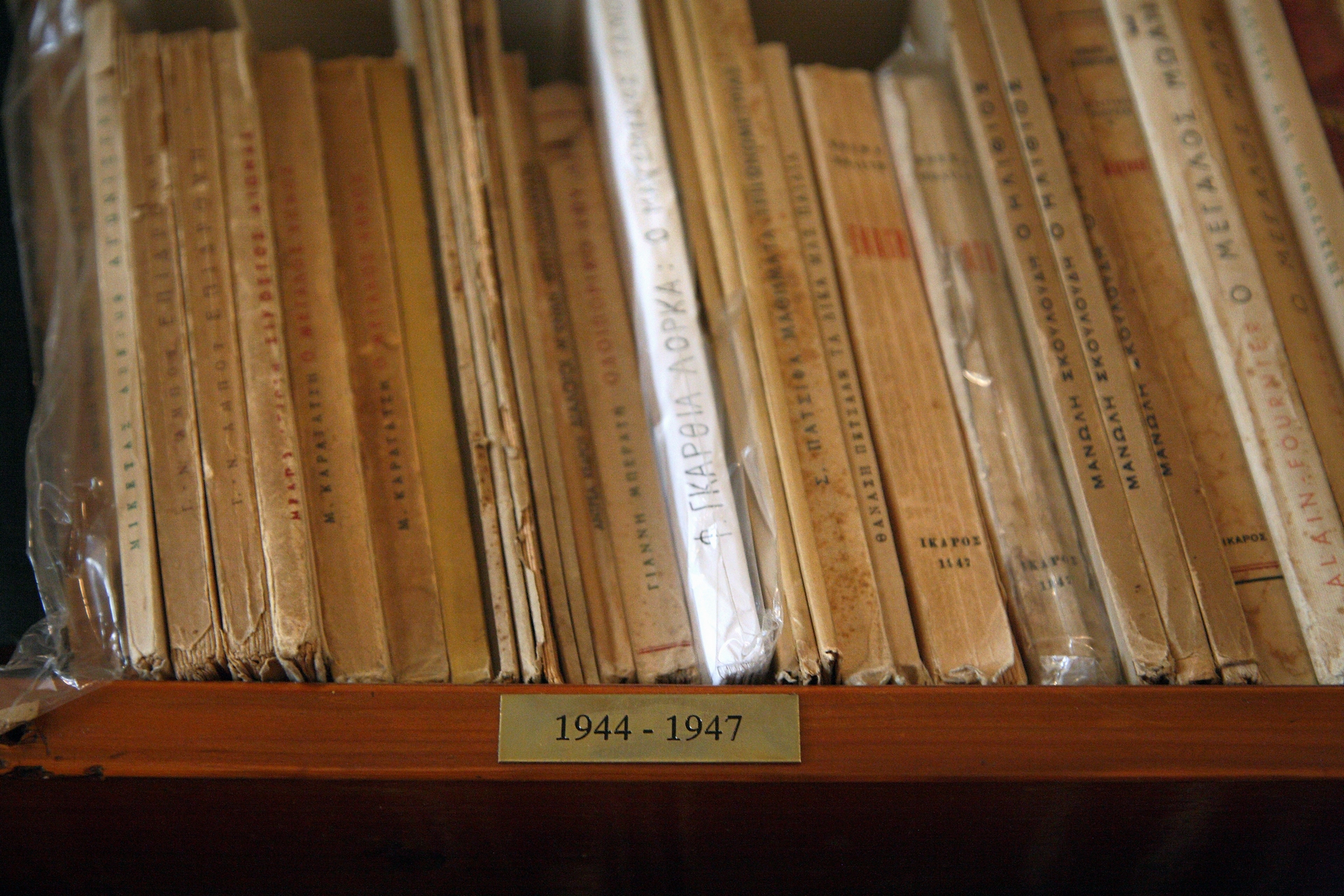 Η κ. Καρύδη συνεχίζει «Από το 1993 και μετά κρατάμε 5 αντίτυπα από κάθε έκδοση, ώστε να συμπληρωθεί το αρχείο. Το λέω αυτό γιατί τις παλαιότερες εκδόσεις αναγκαστήκαμε να τις αναζητήσουμε σε βιβλιοθήκες δημόσιες αλλά και φίλων, γνωστών και αγνώστων. Έτσι όταν λίγα χρόνια πριν ανοίξαμε στη Βουλής 35 τα γραφεία του Ίκαρου, αρχίσαμε να χρησιμοποιούμε τη βιβλιοθήκη στο πατάρι για το αρχείο. Διατηρώ ακόμη εδώ το γραφείο μου, εδώ εργάζομαι και στο νέο χώρο πηγαίνω τα απογεύματα».
