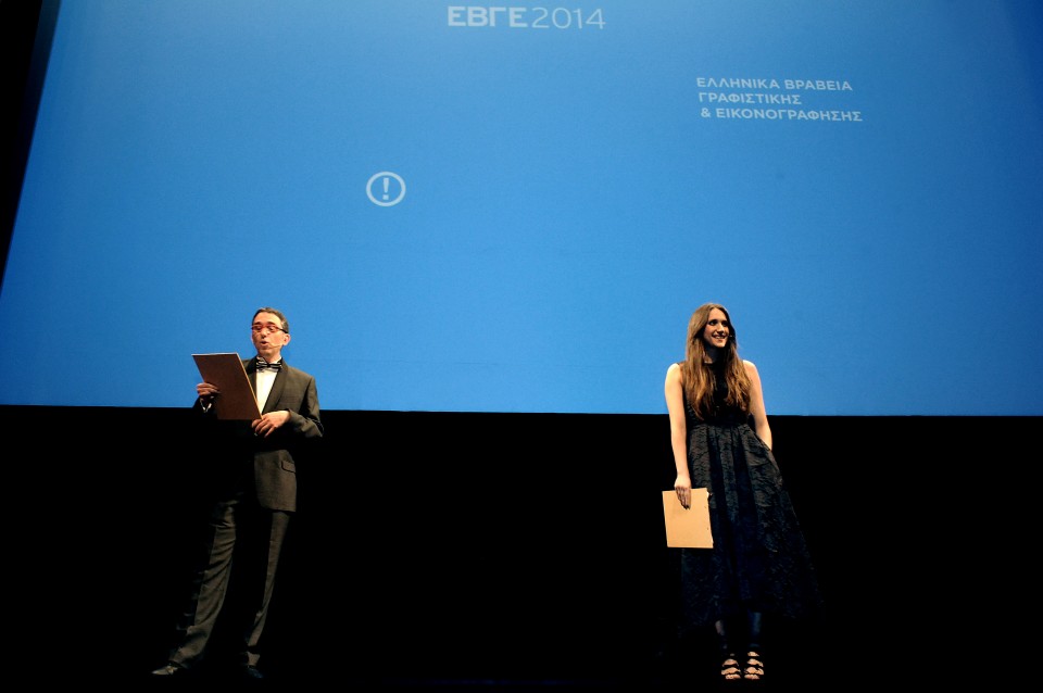 Τα Ελληνικά Βραβεία Γραφιστικής και Εικονογράφησης – δηλαδή τα Όσκαρ των ελλήνων γραφιστών – απονεμήθηκαν και για το 2014 σε μια γεμάτη χιούμορ τελετή απονομής στη Στέγη Γραμμάτων και Τεχνών, το βράδυ της περασμένης Πέμπτης. Η διοργάνωση, που φέτος μέτρησε τον «τυχερό» 13ο χρόνο της, μοίρασε επαίνους και βραβεία για 31 διαφορετικές κατηγορίες στην αφρόκρεμα των ελληνικών ανεξάρτητων δημιουργικών γραφείων. Η αγαπημένη μας Λυδία Παπαϊωάννου, που συμπαρουσίασε την τελετή απονομής για πέμπτη συνεχή χρονιά, κυριολεκτικά έσωσε τη μέρα κι αντιστάθμισε την έμφυτη συστολή των γραφιστών πάνω στην σκηνή. Μαζί της ο κύριος «Τυχαίο Δε Νομίζω» Θοδωρής Τσεκούρας, από τους πιο επιτυχημένους διαφημιστές των τελευταιων χρόνων. Ειδική μνεία να κανουμε εδώ στα βίντεο – που προλόγιζαν κάθε κατηγορία – μεγάλα αριστουργήματα μικρού μήκους, από μόνα τους ένας λόγος για να ευχαριστηθείς τη βραδιά.