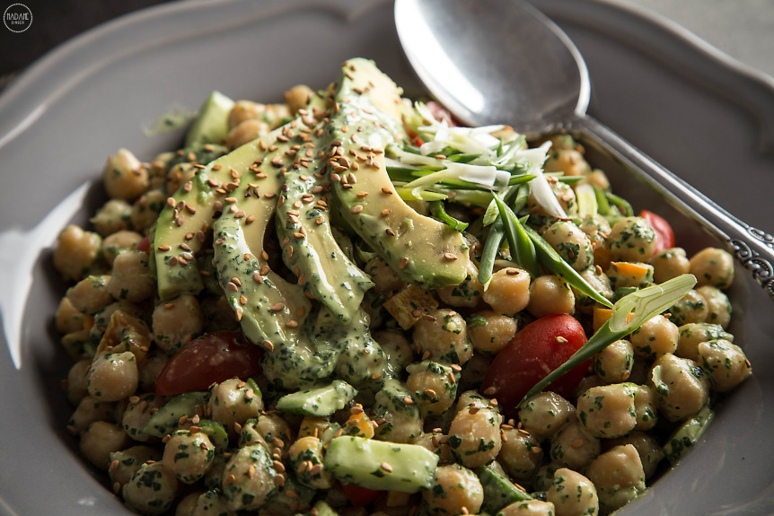 Ρεβυθοσαλάτα με αβοκάντο και πράσινη σος ταχινιού