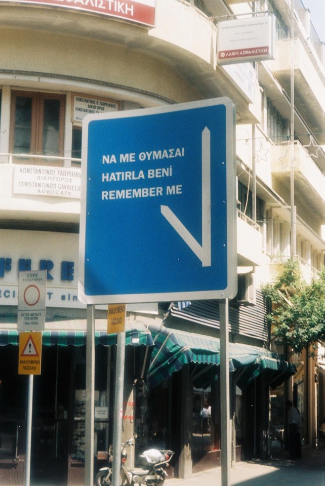 Ο φίλος Παναγιώτης Μιχαήλ, το 2005 νομίζω, αποτύπωσε αυτό το γενικό αίσθημα της εποχής σε μια καίρια εικαστική του παρέμβαση. Τοποθέτησε στη Λευκωσία (και στις δύο πλευρές) πινακίδες (τύπου τροχαίας) με τη φράση ΝΑ ΜΕ ΘΥΜΑΣΑΙ / REMEMBER ME / HATIRLA BENI. Πέραν όποιας άλλης πιο προσωπικής σημειολογίας, ένιωσα βλέποντάς το ότι πια τα απόλυτα συνθήματα τύπου ΔΕΝ ΞΕΧΝΩ ή ΜΙΑ ΠΑΤΡΙΔΑ ΕΝΑΣ ΛΑΟΣ ξεθώριασαν στο χρόνο και απέμεινε ένα απλό ΝΑ ΜΕ ΘΥΜΑΣΑΙ, παρακλητικά να το απευθύνει το ένα κομμάτι της μοιρασμένης πόλης στο άλλο μισό, εμείς στους Τουρκοκύπριους και αντίστροφα, η πατρίδα σε όλους μας.