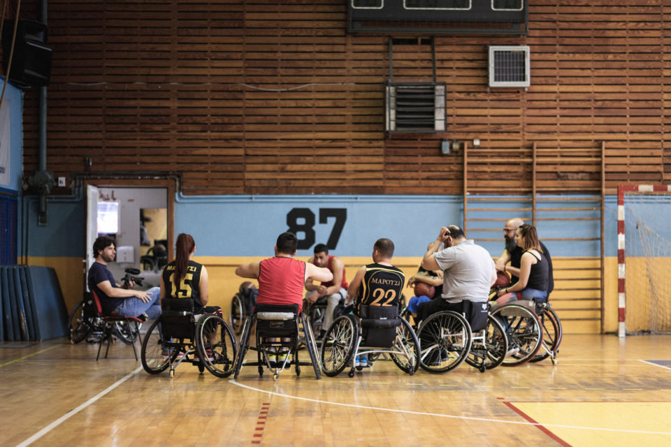 Μιλήσαμε φυσικά και για το μπάσκετ ΑμεΑ. Για τους κανονισμούς του, το επίπεδο επαγγελματισμού κι εμπορικότητας σε σχέση με το εξωτερικό, τον προπονητή τους Βάιο Γιώρα (πρωταθλητή Ευρώπης με τους Παίδες το 1989 και πρωτοπόρο στον ειδικό αθλητισμό στη χώρα μας μετά το δικό του ατύχημα στα μέσα των 90s), το αδυσώπητο «ξύλο» που πέφτει όταν προστίθενται τα αμαξίδια στις μάχες της ρακέτας.