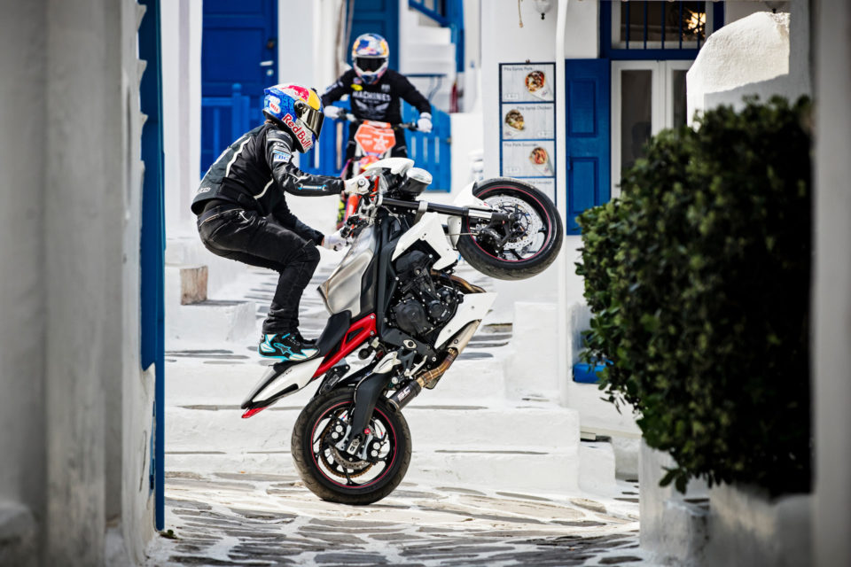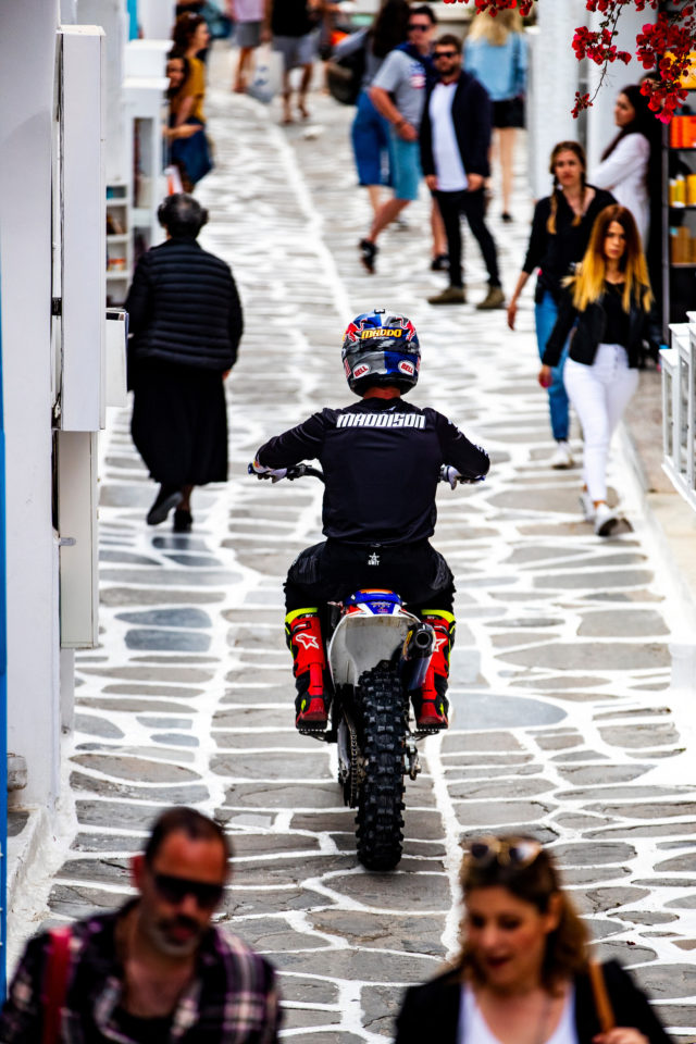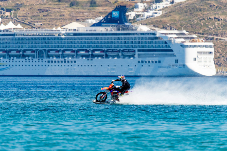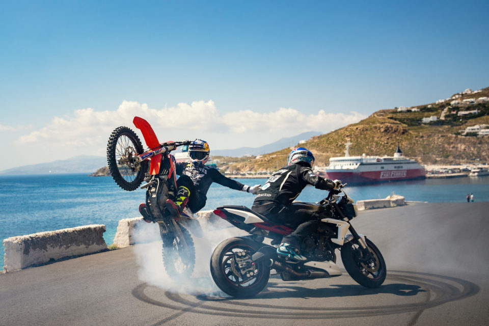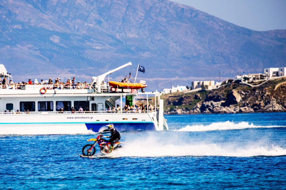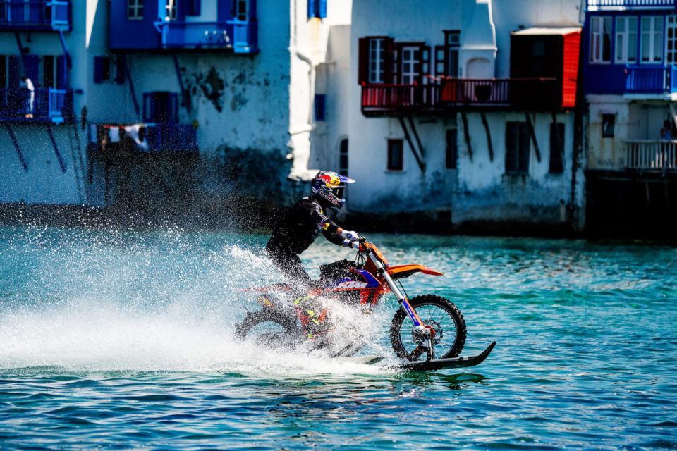 Εκεί που σέρφαραν «μοτοσυκλέτες», τραβώντας όλα τα βλέμματα. Γιατί δύο σπουδαίοι εκπρόσωποι της freestyle σκηνής, ο αυστραλός Ρόμπι Μάντισον και ο βρετανός Άαρον Κόλτον βρισκονταν στο νησί φορτώνοντας με τα ακροβατικά τους stunts το καινούριο βίντεο της Red Bull, “Rippin Mykonos” (που βλέπετε παραπάνω)