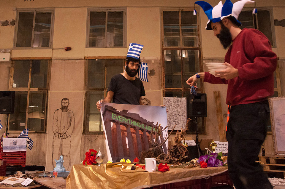 Να σημειωθεί ότι δεν θεωρούμε ότι υπάρχει ένα απελευθερωτικό ‘εκτός’ της εθνικής ταυτότητας. Εφόσον έχουμε μεγαλώσει εδώ, έχουμε πάει σε ελληνικά σχολεία, έχουμε σχετιστεί με τις δομές της ελληνικότητας με τον έναν ή τον άλλο τρόπο, αυτό είναι ένα πεδίο διαπραγμάτευσης από το οποίο δεν μπορούμε ακριβώς να αποσυνδεθούμε. Δηλαδή δεν υπάρχει κάποιος εξορκισμός του έθνους από την ψυχική δομή, να τον κάνουμε να ξεμπερδέψουμε. Γι’αυτό και στη δουλειά μας μάς ενδιαφέρει να καταλάβουμε και τη δική μας σχέση με την ελληνικότητα και τον δικό μας πόνο (αλλά και απόλαυση) μέσα σ’αυτό το πεδίο.