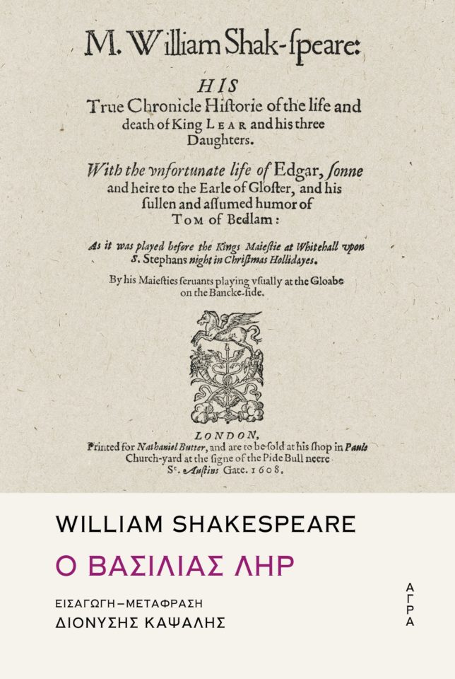 Διαβάστε τη νέα μετάφραση στον Βασιλιά Ληρ του Γουίλιαμ Σαίξπηρ που κυκλοφορεί από την Άγρα, σε μια επετειακή έκδοση για τα 1.500 βιβλία των εκδόσεων. Την μετάφραση και το εκτενές εισαγωγικό σημείωμα υπογράφει ο ποιητής Διονύσης Καψάλης.«Είναι το πιο αισχύλειο από τα έργα του Σαίξπηρ, το πιο στοιχειώδες και πρωταρχικό, το πιο ωκεάνειο και τιτάνιο στη σύλληψή του», είχε γράψει κάποτε ο Α.Τ. Σουίνμπερν. ΛΡ