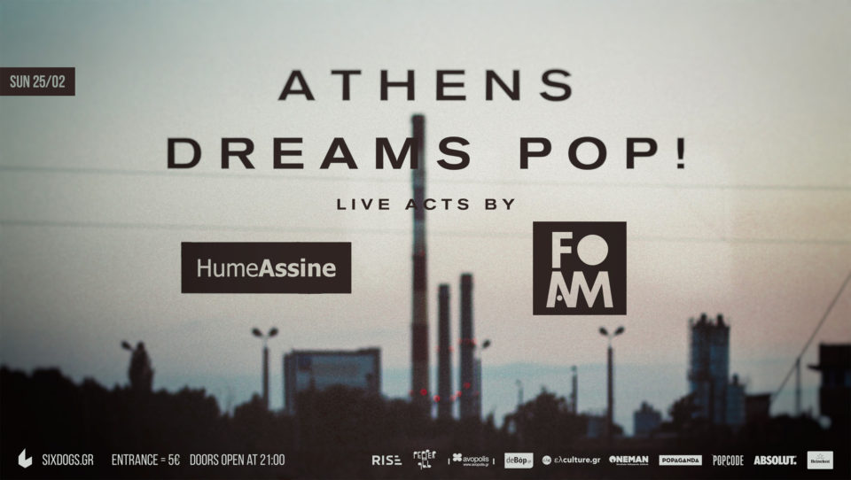O Hume Assine και οι FOAM θα εμφανιστούν στο Athens Dreams Pop Showcase στο six d.o.g.s την Κυριακή 25 Φεβρουαρίου. Να είστε εκεί λίγο πριν τις 21:00. Είσοδος: 5 ευρώ.