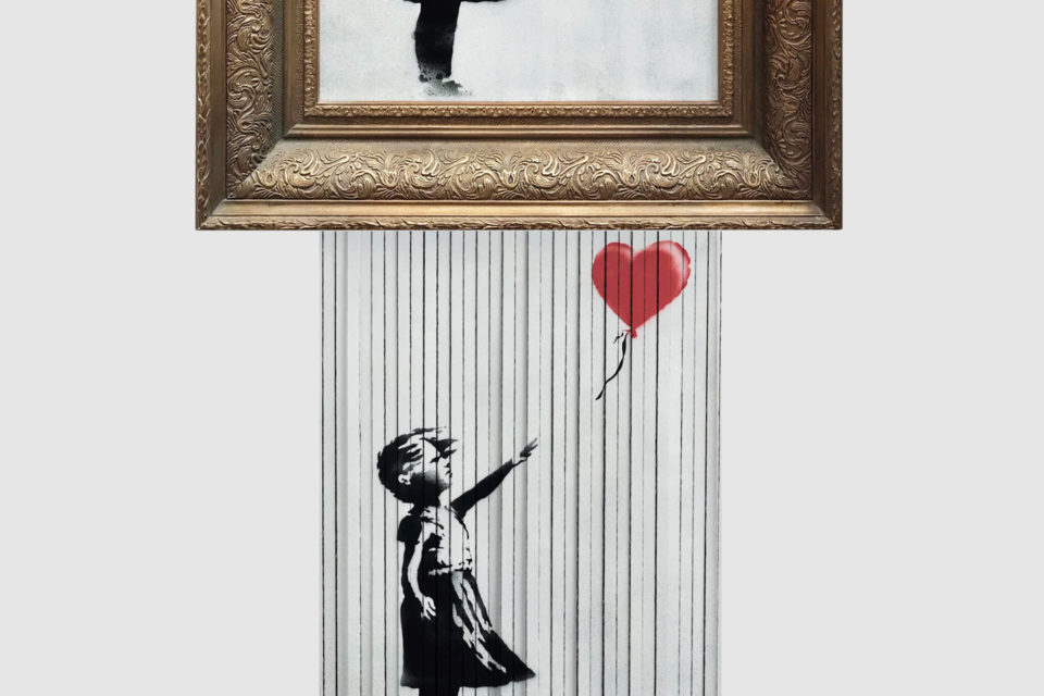 Η αυτοκαταστροφή του πίνακα μετά το πέρας της δημοπρασίας, πράξη που ο Banksy είχε προσεκτικά σχεδιάσει εδώ και χρόνια όταν ενσωμάτωσε στην κορνίζα του έργου έναν μηχανισμό παρόμοιο με αυτό που έχουν οι καταστροφείς εγγράφων.