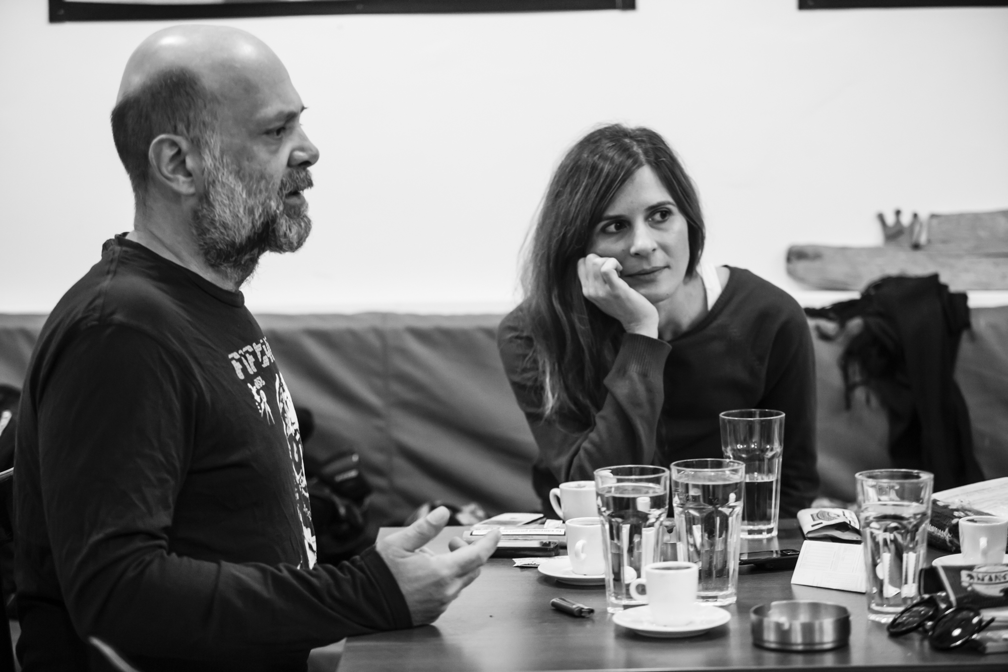 «Εδώ στο καφενείο οι θαμώνες γνωρίζονται μεταξύ τους, ο ήρωες εδώ είναι απλοί άνθρωποι και είχε ενδιαφέρον για μας να μπορέσουμε να το επικοινωνήσουμε», παρατηρεί ο Χρήστος. «Το συνάφι μας έχει ιστορία σε αυτά τα μέρη. Τα μπουλούκια παλιά που έκαναν περιοδίες σε τέτοια μέρη έπαιζαν. Αν πηγαίναν στο χωριό που θα έπαιζαν; Σε καφενεία, πλατείες και σχολεία- έβαζαν τραπέζια για σκηνή. Δεν διεκδικούμε καμιά παγκόσμια πρωτοπορία. Εμάς μας ενδιέφερε το δημόσιο πρόσωπο.» Πράγματι, στα καφενεία γίνονταν ζυμώσεις- πολιτικές, προωπικές και επαγγελματικές. Στο παρελθόν μαζεύονταν όλοι εκεί ο κόσμος έβρισκε δουλειές. «Θυμάμαι παλιά που ο πατέρας μου με έπαιρνε στα καφενεία και έσκαγε ένας εργολάβος και έλεγε ότι ψάχνουν χτίστες, σιδεράδες… Προεκλογικά ειδικά γίνονταν όλα στα καφενεία. Είναι ένας πολύ προσωπικός χώρος. Και είμαστε σε μια εποχή που όλα γυρνάνε πίσω. Και στς σημερινές καφετέριες δε συμβαίνει τίποτα- είναι γεμάτος ο χώρος με iphone και οι άνθρωποι δεν μιλάνε μεταξύ τους. Είναι παλαβό γιατί υπάρχει μια τάση οι άνθρωποι να προσπαθούν να ξαναφέρουν το παραδοσιακό με ένα σύγχρονο τρόπο.»