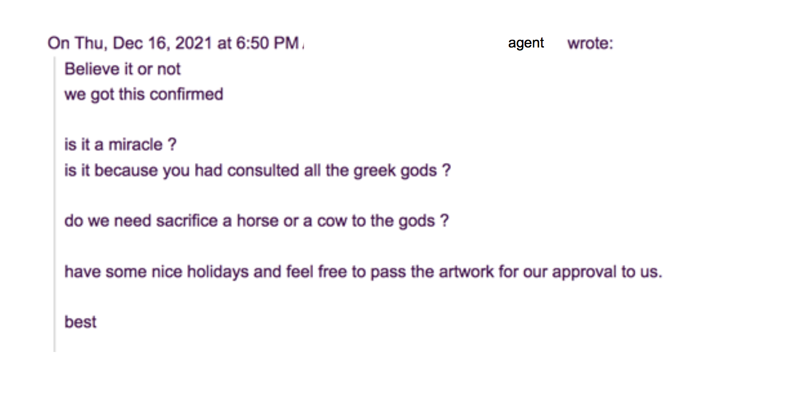 Πριν όμως φτάσουν στ’ αυτιά μας τα ευχάριστα νέα του ερχομού του, το booking του πέρασε από χίλια κύματα. Μέσα από μία δεκαετή σειρά αναβολών, ατυχιών και reschedules, η ατζέντισσα του Todd ανέπτυξε στενές σχέσεις με τους διοργανωτές του Plissken Festival και των EDEN Parties. Όταν τελικά η εμφάνισή του επιβεβαιώθηκε, η ίδια μοιράστηκε μαζί τους τον απολαυστικό αναστοχασμό της: «Είτε το πιστεύετε είτε όχι, έχουμε επιβεβαίωση (σ.σ. της εμφάνιση του Todd Terje στην Αθήνα). Πρόκειται για θαύμα;