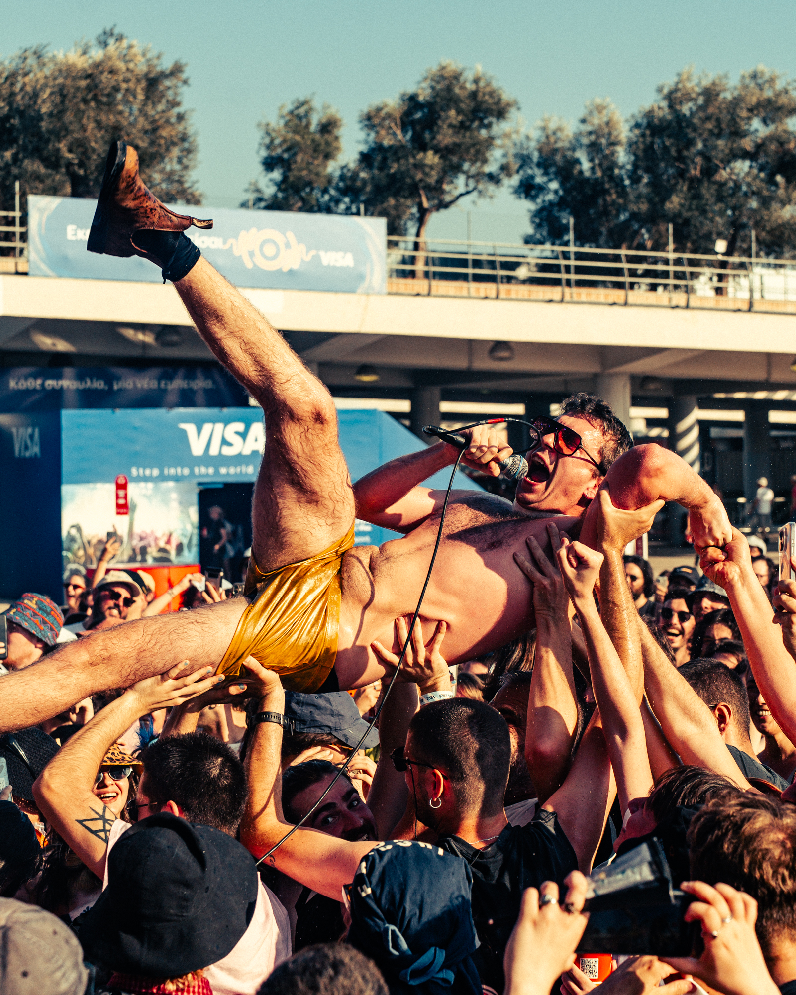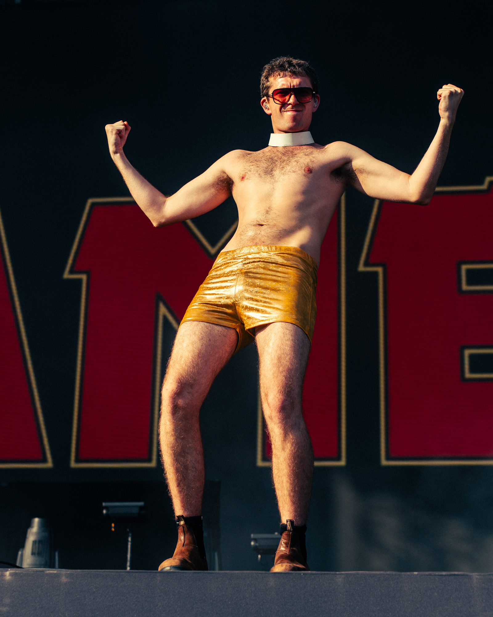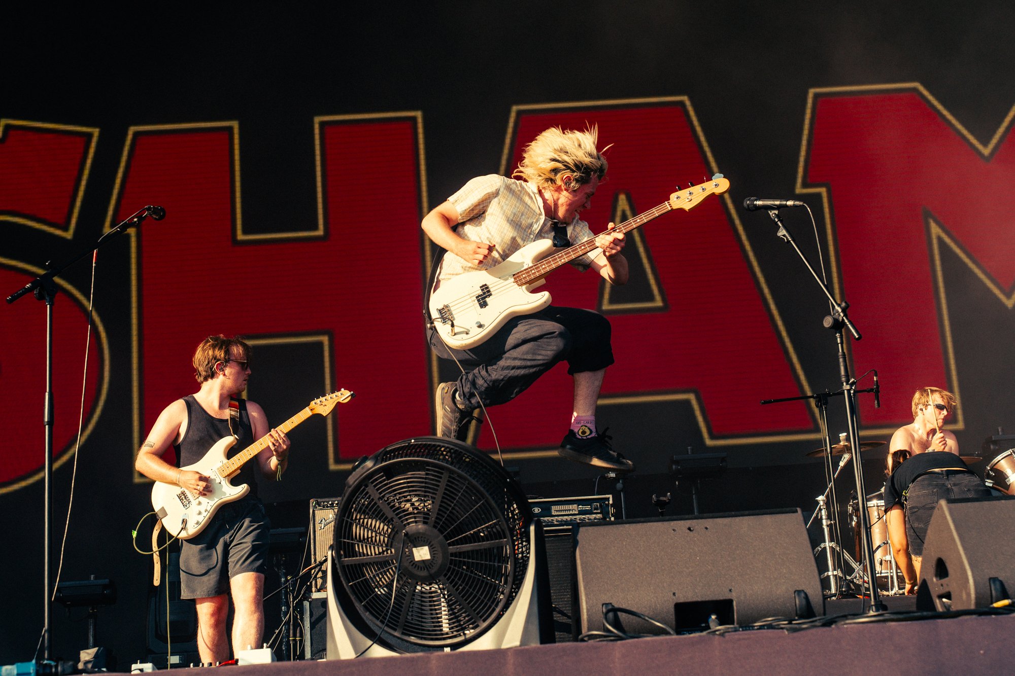 Γύρω στις 18:35, οι Βρετανοί Shame, φίλοι καλοί με τους Fontaines D.C. και εκπρόσωποι της τελευταίας γενιάς του post-punk, δεν χαμπαριάζουν από τον καυτό ήλιο και ορμούν στη σκηνή γεμάτοι όρεξη για παιχνίδι και χορό. Ο frontman της μπάντας, Charlie Steen, φόρεσε τα απολύτως απαραίτητα – τα γυαλιά του και ένα χρυσό στραφταλιζέ speedo δηλαδή, και εμφανώς ευδιάθετος βρέθηκε σε συνεχή επαφή με τον κόσμο κάνοντας μέχρι και stage diving από τα πρώτα κομμάτια του set τους.