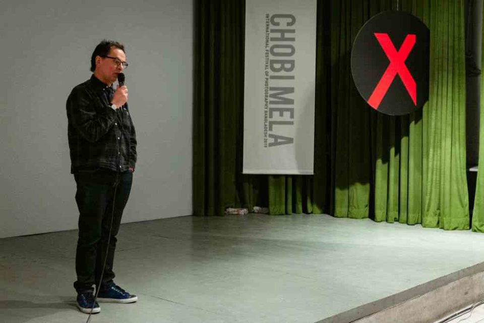 Ανακοινώσατε απόψε πως σύντομα θα οργανώσετε ένα σεμινάριο φωτογραφίας στην Pathsala στη Dhaka. Αυτά είναι υπέροχα νέα, και είδα πολλά ενθουσιασμένα πρόσωπα στο κοινό. Αυτό μου φαίνεται σαν κομμάτι μιας εξαιρετικά αναγκαίας στροφής προς μη-ευρωπαϊκά ή αμερικανικά κέντρα της φωτογραφίας, και η Dhaka είναι ένα τέτοιο κέντρο. Στην αρχή, όταν η φωτογραφία ήταν ακόμη μια νέα τεχνολογία, η προσοχή στρεφόταν σε καλλιτέχνες που είχαν επαρκείς τεχνικές γνώσεις. Το να βγάζεις δαγεροτυπίες ήταν πολύ περίπλοκο και μόνο λίγοι είχαν τα λεφτά να προμηθευτούν τον εξοπλισμό και να επιβιώσουν ως επιχειρήσεις. Κάποιοι πήγαν την τεχνολογία παραπέρα – παραδείγματος χάρη, η Βρετανίδα καλλιτέχνις Anna Atkins ξεκίνησε να φτιάχνει αριστουργήματα με κυανοτυπίες, και ήταν η πρώτη που ξεκίνησε να φτιάχνει βιβλία με φωτογραφίες. Αλλά με τη βιομηχανοποίηση της φωτογραφίας –ξεκινώντας με το φιλμ 35mm, την κάμερα Leica, τους καλούς φακούς και την ψηφιακή φωτογραφία– το φωτογραφικό γίγνεσθαι έγινε οικουμενικό. Η φωτογραφία έγινε προσβάσιμη σε δημιουργικούς ανθρώπους που πριν δεν είχαν τα χρήματα για να ξεκινήσουν επιχειρήσεις με δαγεροτυπίες. Σήμερα δεν υπάρχουν περιορισμοί και είναι αρκετά εύκολο να χειριστείς το τεχνικό σκέλος. Δεν έχει σημασία αν ο φωτογράφος είναι Αμερικάνος, Ρώσος, Γάλλος, Μπαγκλαντεσιανός ή Κινέζος – ο καθένας έχει την τεχνογνωσία. Αλλά τώρα ένα άλλο στοιχείο μπαίνει στο παιχνίδι, που είναι η πολιτισμική προέλευση και η ιστορία της κουλτούρας της κάθε συγκεκριμένης χώρας και έθνους, και θα πρέπει να πω πως υπάρχουν πολλά ακόμα να ανακαλυφθούν στην Ασία. Πρέπει να το φέρουμε στο προσκήνιο αυτό το γεγονός και να φτιάξουμε βιβλία φωτογραφίας και να τα προωθήσουμε σε όλο τον κόσμο. Στα χρόνια που έρχονται αυτό θα είναι το πιο συναρπαστικό από όλα – να αναπτύξουμε περαιτέρω αυτές τις συναντήσεις και τις συζητήσεις.