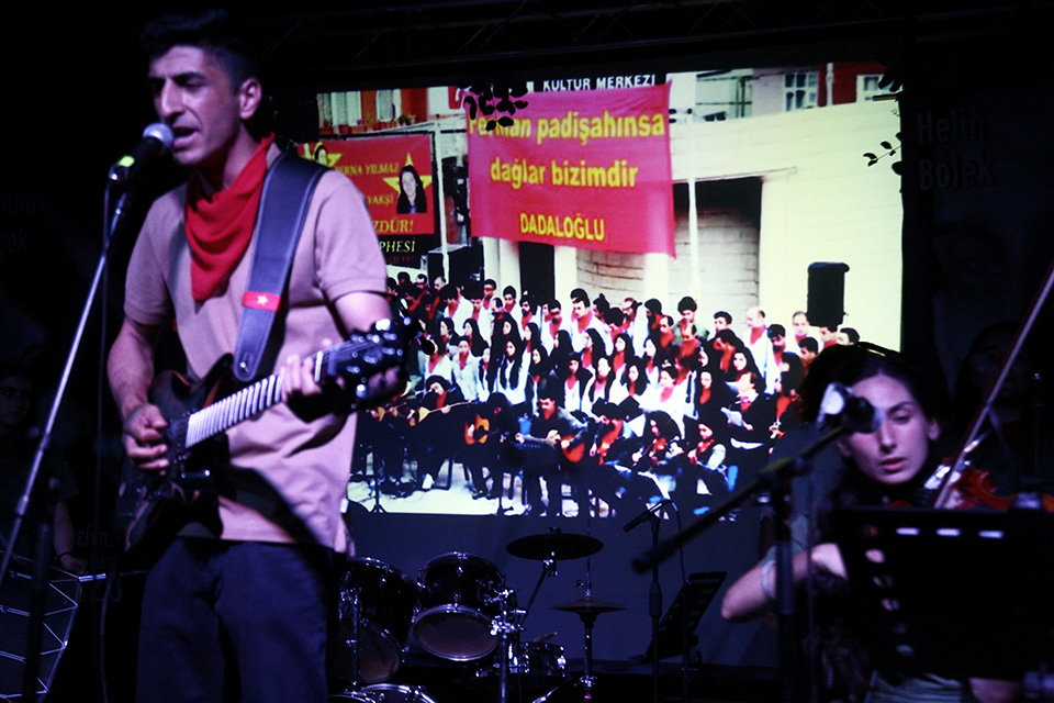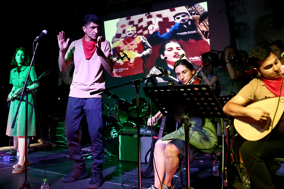 Αρκούσαν οι φωτογραφίες της Χελίν Μπολέκ και του Ιμπραχίλ Γκοκτσεκ, των δυο νεκρών σε απεργία πείνας μελών του Grup Yorum, γύρω από τη σκηνή που στήθηκε στο Γεωπονικό Πανεπιστήμιο για να γεμίσει ο χώρος συγκίνηση. Την ίδια μέρα το πρωί στην ειδική αίθουσα των γυναικείων φυλακών Κορυδαλλού, αστυνομικοί επιτέθηκαν στους 11 πολιτικούς πρόσφυγες από την Τουρκία και το Κουρδιστάν με αποτέλεσμα ένας εξ αυτών να μεταφερθεί στο νοσοκομείο, επειδή απλά συνομιλούσαν με τους δικηγόρους τους την ώρα του διαλλείματος. Για το πρωτοφανές και ανεκδιήγητο περιστατικό η έδρα του δικαστηρίου αρνήθηκε να πάρει θέση. Κάπως έτσι, μέσα σε μια ημέρα, συνοψίζεται εύγλωττα η αντίθεση δύο κόσμων. Από τη μια η αυθαιρεσία και η αγριότητα που ξεσπά πάνω σε σώματα κι από την άλλη η διεθνιστική αλληλεγγύη που μπορεί να βρει διάφορους δρόμους να κυλήσει και σίγουρα το τραγούδι είναι ένας από τους ομορφότερους.