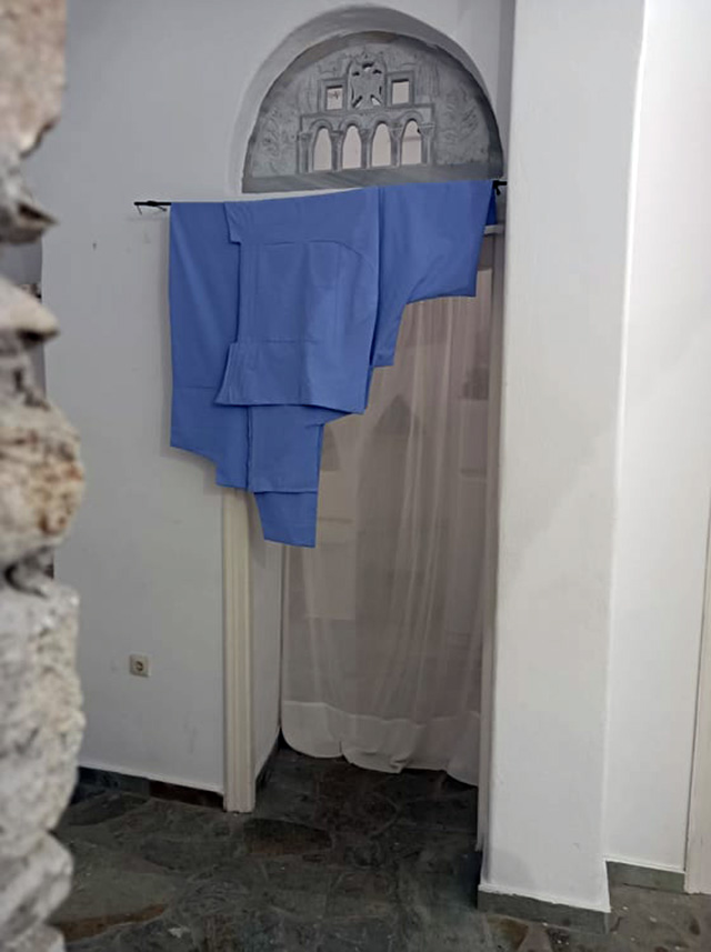 Οι ιστορίες των κατοίκων για «το νησί του Χαλεπά», αντηχούν στον φιλόξενο χώρο του συλλόγου, δίνοντας μια προσωπική και ταυτόχρονα συλλογική διάσταση στα έργα. Κατασκευασμένα από ανακυκλωμένα προϊόντα του τουρισμού (σεντόνια, πετσέτες, τραπεζομάντηλα των ξενοδοχείων της Τήνου), τα έργα φέρουν την «καλλιτεχνική υπογραφή» τόσο της εικαστικού, όσο και των κατοίκων. Η αναπαράσταση των καιρικών συνθηκών είναι κυρίαρχη. H συνολική εμπειρία είναι άρρηκτα συνυφασμένη με το μονοπάτι προς τον «Κάβο», τις λευκές σημαίες που σηματοδοτούν την περιήγηση, αποτυπώνοντας την διαρκή επενέργεια του περιβάλλοντος στη ζωή των ανθρώπων και το αντίστροφο, το μάρμαρο, ως δομικό στοιχείο της ιδιαίτερης αρχιτεκτονικής ομορφιάς και των λειτουργικών χαρακτηριστικών της τηνιακής γης, που επί αιώνες έχει φροντίσει και χαράξει με τις διαδρομές και τις συνήθειες του, ο ντόπιος πληθυσμός.
