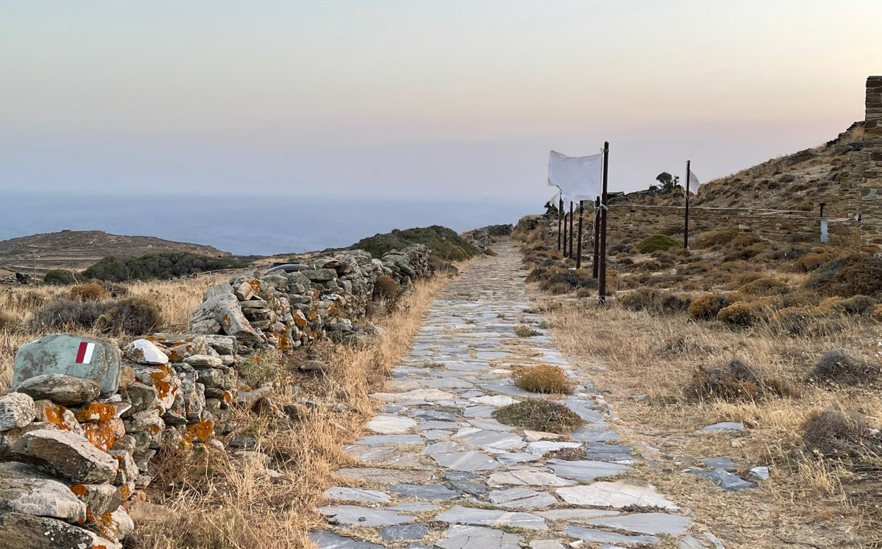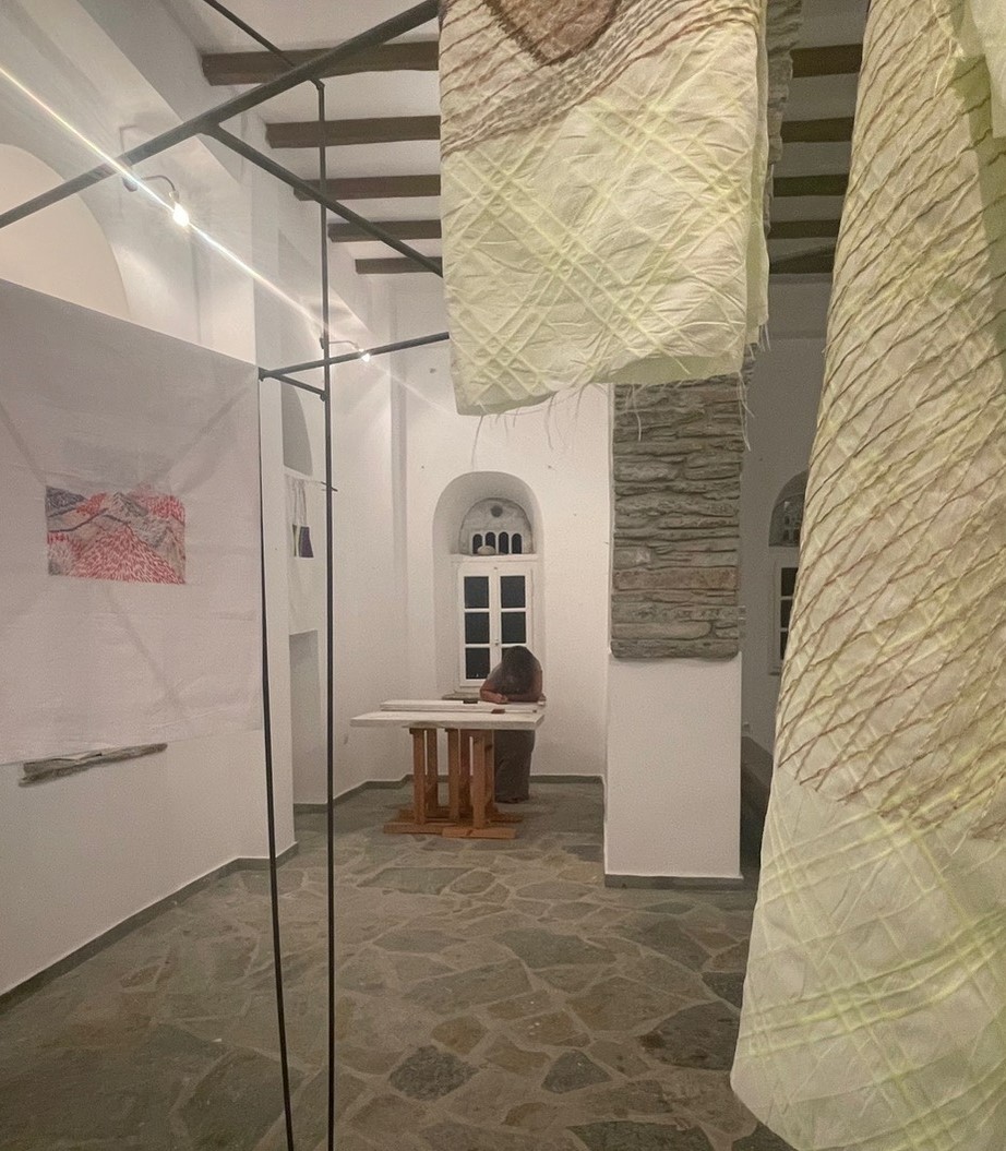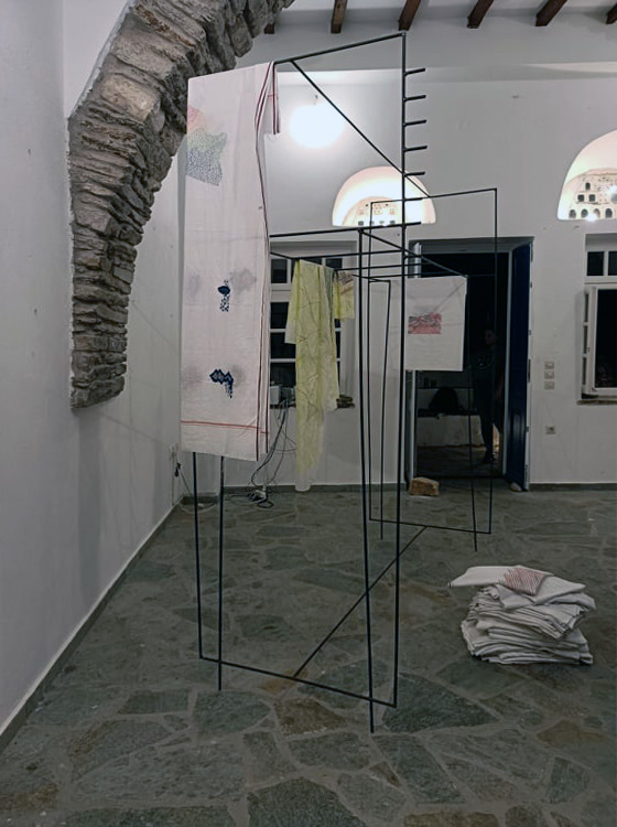 Το εγχείρημα της Κυριακής Κώστα, που ξεκίνησε ως residency της εικαστικού και της επιμελήτριας στην Τήνο (Ιούνιος- Ιούλιος του 2021), εξελίχθηκε σε μία διαδρομή που ξεκινάει από το Ίδρυμα Τηνιακού Πολιτισμού και που, περνώντας από ιστορικά μονοπάτια, φτάνει μέχρι το Χάνι της Κυρα-Ξένης, τον Κτικάδο, τον Τριπόταμο και το μεσαιωνικό μονοπάτι που οδηγούσε στο κάστρο του Ξώμβουργου· και στην έκθεση που παρουσιάζεται μέχρι και την ερχόμενη Κυριακή 19/9 στο χωριό του Τριποτάμου, στον χώρο του Συλλόγου Τριποταμιανών και Σμπεραδιανών «Ο Κάβος».