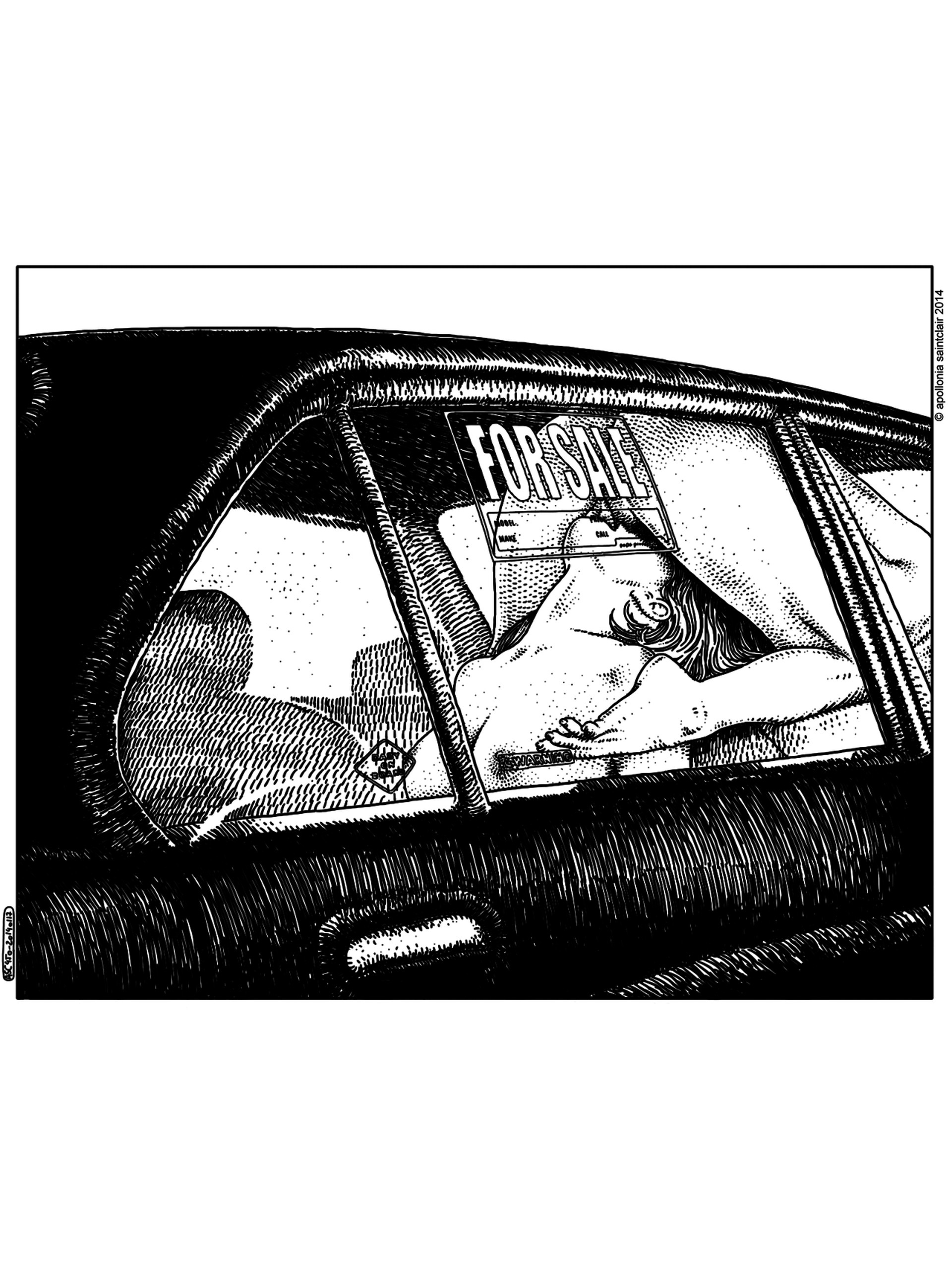 Σχεδιάζεις σαν comic artist αλλά δεν δημιουργείς ιστορίες κόμιξ. Πιστεύεις περισσότερο στη δύναμη της μοναδικής εικόνας; Η αλήθεια είναι ότι προτιμώ να συμπυκνώνω μια σύνθετη ιστορία σε ένα σκίτσο, από την άλλη όμως ο πραγματικός λόγος που δεν κάνω κόμιξ είναι επειδή δεν έχω αρκετό χρόνο και αρκετή εκπαίδευση. Με την πρώτη ευκαιρία πάντως θα δοκιμάσω την τύχη μου.
