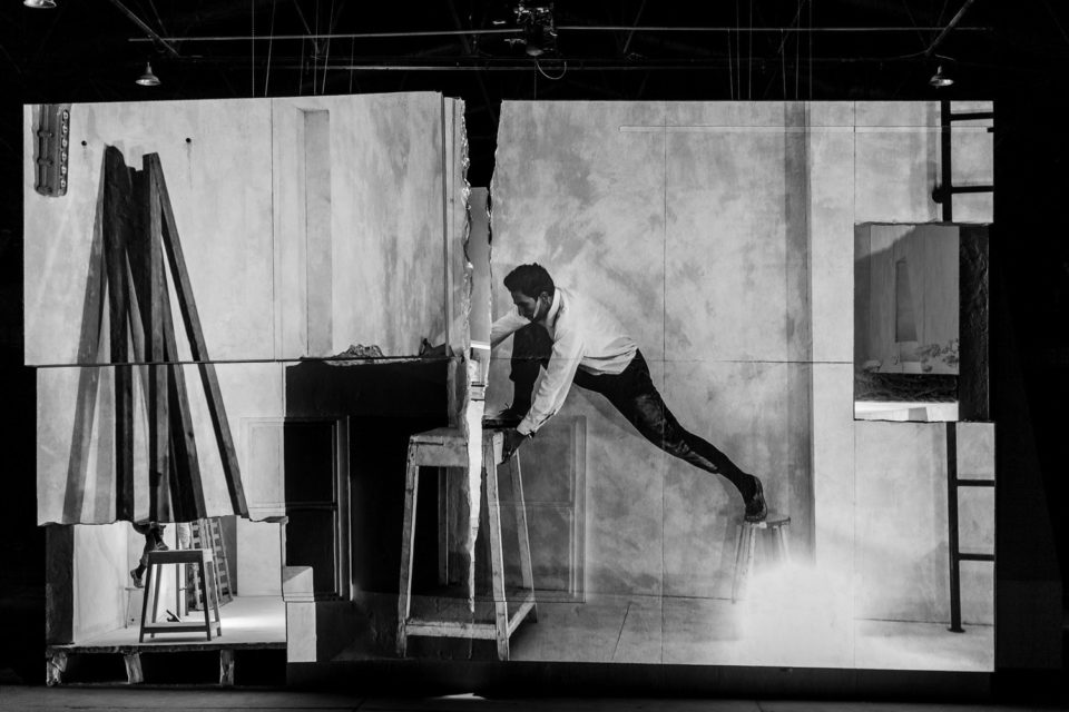 Ο Άρης Σερβετάλης στην παράσταση του Δημήτρη Κουρτάκη «Αποτυχημένες απόπειρες αιώρησης στο εργαστήριό μου» (2017), μία από τις καλύτερες παραστάσεις που ανέβηκαν ποτέ στο Φεστιβάλ.