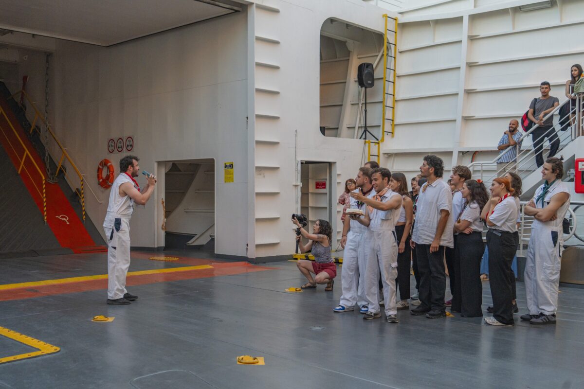 Δεν ήταν εύκολο. «Η μεγαλύτερη πρόκληση ήταν οι πρόβες. Είχαμε στη διάθεσή μας το καράβι μόλις δύο φορές, κι αυτό με έβαλε στη θέση να εμπιστευτώ το ένστικτό μου, να αφεθώ στη δυναμική του ίδιου του χώρου και να τον αφήσω να υπαγορεύσει μέρος της σκηνικής γραφής. Νομίζω αυτή η αβεβαιότητα, αυτή η ζωντανή συνθήκη, είναι που κάνει την παράσταση αληθινή».