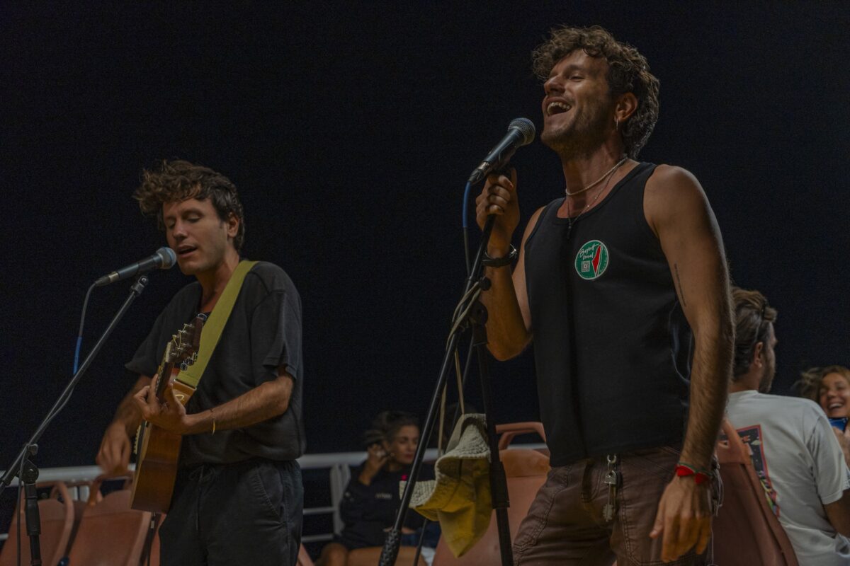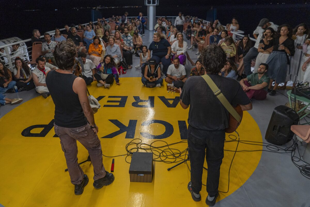 Αυτή τη φορά σε συνοδεία μιας μουσικής που ξέφευγε ακόμη και από τα δικά της συνηθισμένα: τα Καλογεράκια στο δροσερό κεντρικό κατάστρωμα να παντρεύουν ποίηση και αλμύρα. Έτσι, εκεί που το νερό αγγίζει το σώμα του καραβιού, γεννήθηκε μια εμπειρία που ζητούσε μόνο συμμετοχή – όπως και να αφήσεις για λίγο τον εαυτό σου να χαθεί μέσα σε λέξεις που προσπαθούσαν να πετάξουν.