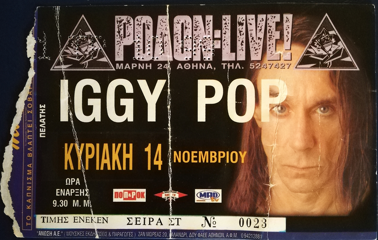 Φυσικά και θυμάμαι τις πρώτες φορές που είδα τον Iggy Pop. Πώς να μη τις θυμάμαι όταν αποφάσισε να βγάλει όλα του τα ρούχα στη σκηνή ή όταν επάνω μου προσγειώθηκαν σταγόνες από το αίμα του; Έχει πάρει κάτι, κάπου το αυτί σας για εκείνες τις εμφανίσεις; Αλήθεια είναι. Την ημέρα, με τον Iggy αιματοβαμμένο στη σκηνή, όλοι εμείς που βρεθήκαμε στην τσιμεντένια Προβλήτα 3 το 1996 δεν θα την ξεχάσουμε ποτέ. για πολλούς ακόμη λόγους.