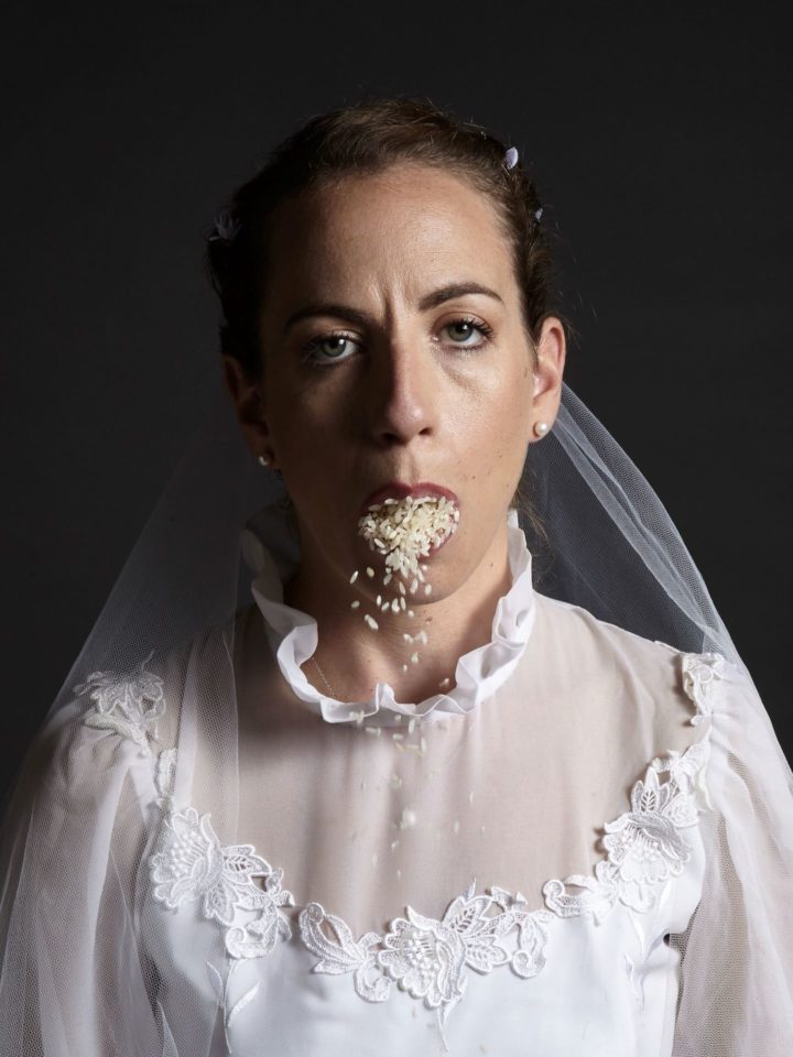 Στου πατέρα το στόμα βάζει ο Μάριος Ποντίκας όλες τις μεγάλες αλήθειες που τις λέει κυνικά, λαϊκά, αβασάνιστα, προκλητικά, αφού εκείνος τα θεωρεί φυσικά. Οπως φυσικό θεωρεί να παντρέψει την Αφέντρα με τον βιαστή της, με το αζημίωτο φυσικά. Και τότε οι κουρτίνες-γάζες από τις δυο πλευρές της σκηνής πέφτουν, όπως οι μάσκες, κι αποκαλύπτεται ένα μπουκωμένο μικροαστικό σκηνικό (θρησκευτικές εικόνες, φλυτζανάκια του καφέ, κουρελούδες, σιδερώστρα) και πολλά, πάρα πολλά πάκα εφημερίδων -οι σελίδες που έχουν καταγράψει τους βιασμούς, τις κακοποιήσεις και τις γυναικοκτονίες εδώ και πολλά χρόνια. Και πάλι μπροστά στα μάτια μας, μ’ έναν θαυμαστό τρόπο -σκηνή ανθολογίας-, όλα τα κεντρικά πρόσωπα του έργου αλλάζουν, βάζουν τα καλά τους και πάνε στον γάμο, σέρνοντας μαζί τους την Αφέντρα. «Η μαμά τους θα δακρύζει/ συγγενείς, πεθερικά,/ τα κορίτσια, τα καημένα/ κι ούτε λέξη πια γι’ αυτά».