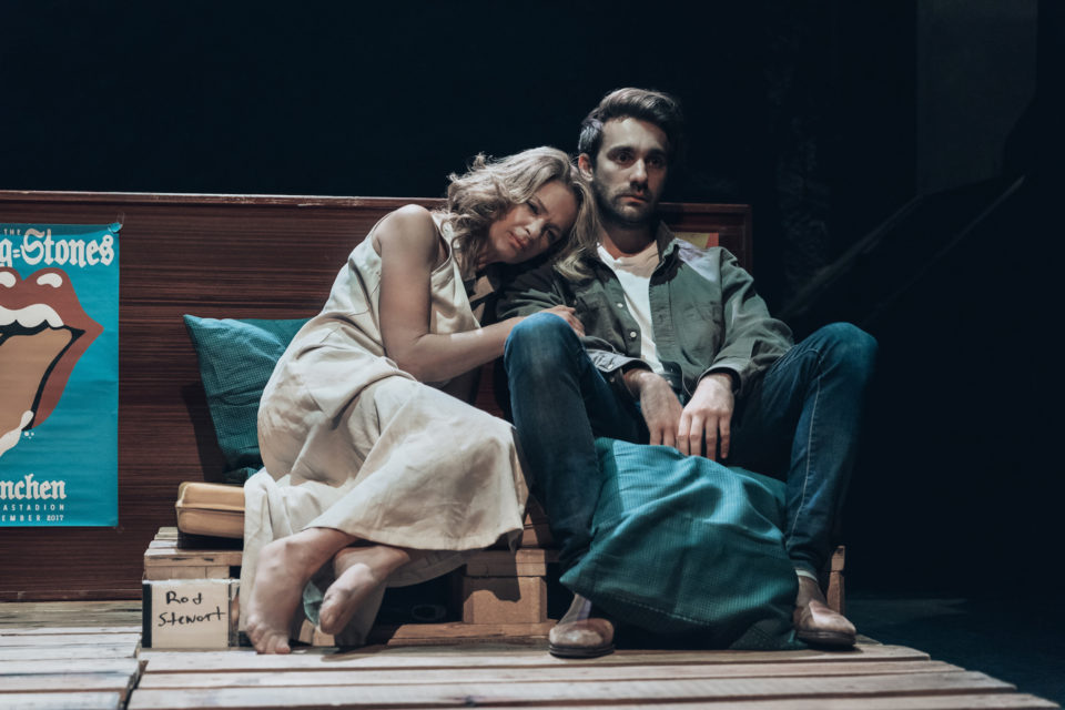Το πρώτο πράγμα που επιχειρεί να κάνει ο Μάνος Καρατζογιάννης είναι να αναδείξει τη διαχρονία του κειμένου. Και το πραγματοποιεί κατ’ αρχήν με τα σκηνικά (Γιάννης Αρβανίτης), στήνοντας με παλέτες τους χώρους της μεσοαστικών διαμερισμάτων της δεκαετίας του ’80 κάπου στην Αθήνα. Εικόνα που θυμίζει ασφαλώς σημερινά φοιτητικά διαμερίσματα, αλλά είπαμε: η διαχρονία. Μόνο οι αφίσες παραπέμπουν στην εποχή και ο Μαρξ που ονοματίζεται… Μπακούνιν, από τον βιαστικό επαναστάτη. Το πλαίσιο της εποχής είναι εκείνο, των παραμονών των εκλογών του 1985, και σ’ αυτό το σημείο μένει απολύτως πιστός ο Μάνος Καρατζογιάννης στο πλαίσιο που η Λούλα Αναγνωστάκη είχε θέσει στο έργο: ήχοι προεκλογικών συγκεντρώσεων, μουσικές της εποχής, που ασφαλώς σήμερα λειτουργούν ως αναμνήσεις. Μακρινές; Αναμνήσεις που υπογραμμίζονται με την εναρκτήρια μουσική, του Λουκιανού Κηλαηδόνη« Φεύγουν τα καλύτερά μας χρόνια»… (επιμέλεια μουσικής, Αντώνης Παπακωνσταντίνου).