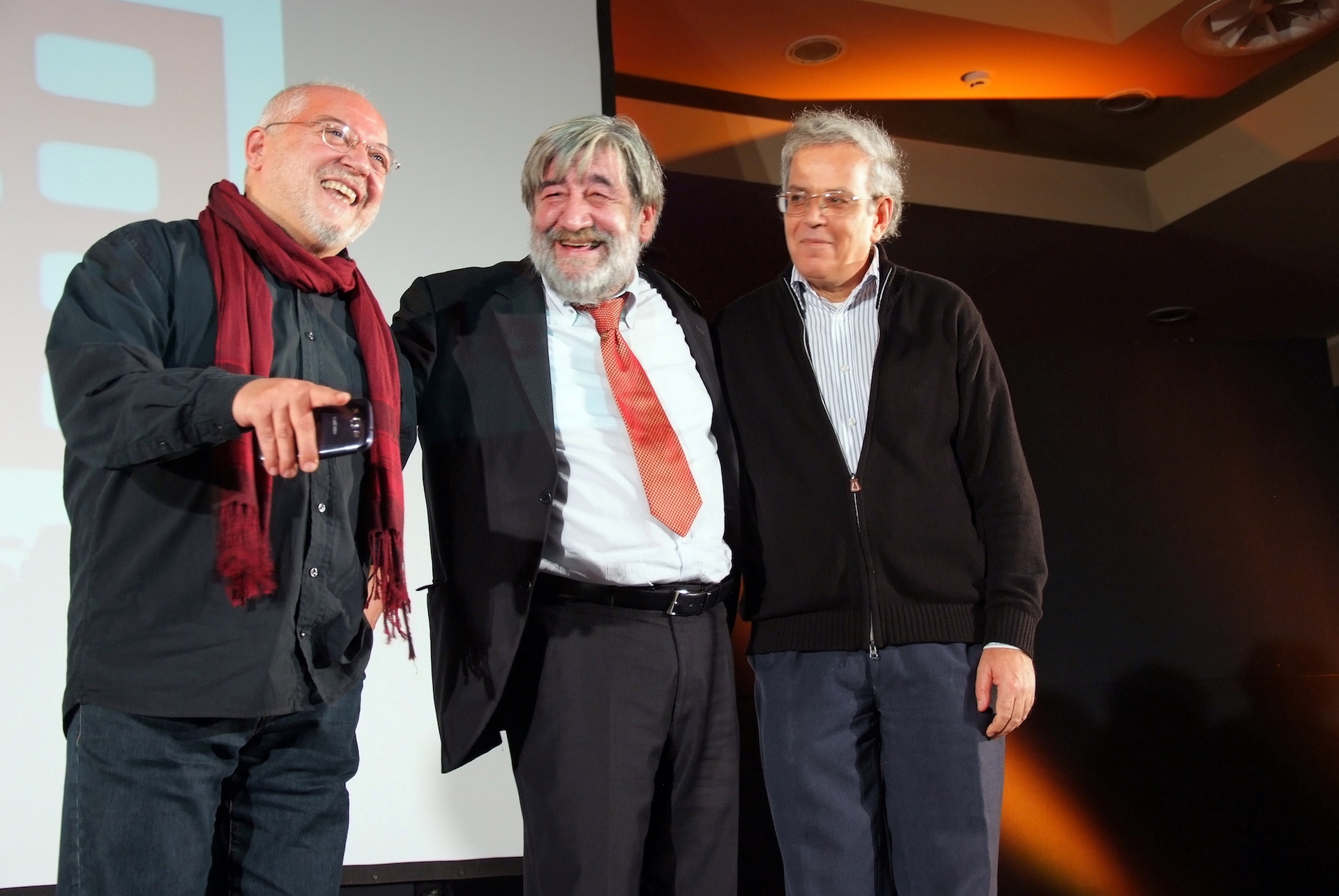 Oι τρεις διοργανωτές του Φεστιβάλ: Δημήτρης Σπύρου (καλλιτεχνικός διευθυντής του φεστιβάλ Ολυμπίας), Νίκος Θεοδοσίου (καλλιτεχνικός διευθυντής του παράλληλου τμήματος Camera Zizanio), Χρήστος Κωνσταντόπουλος (υπεύθυνος οργάνωσης)