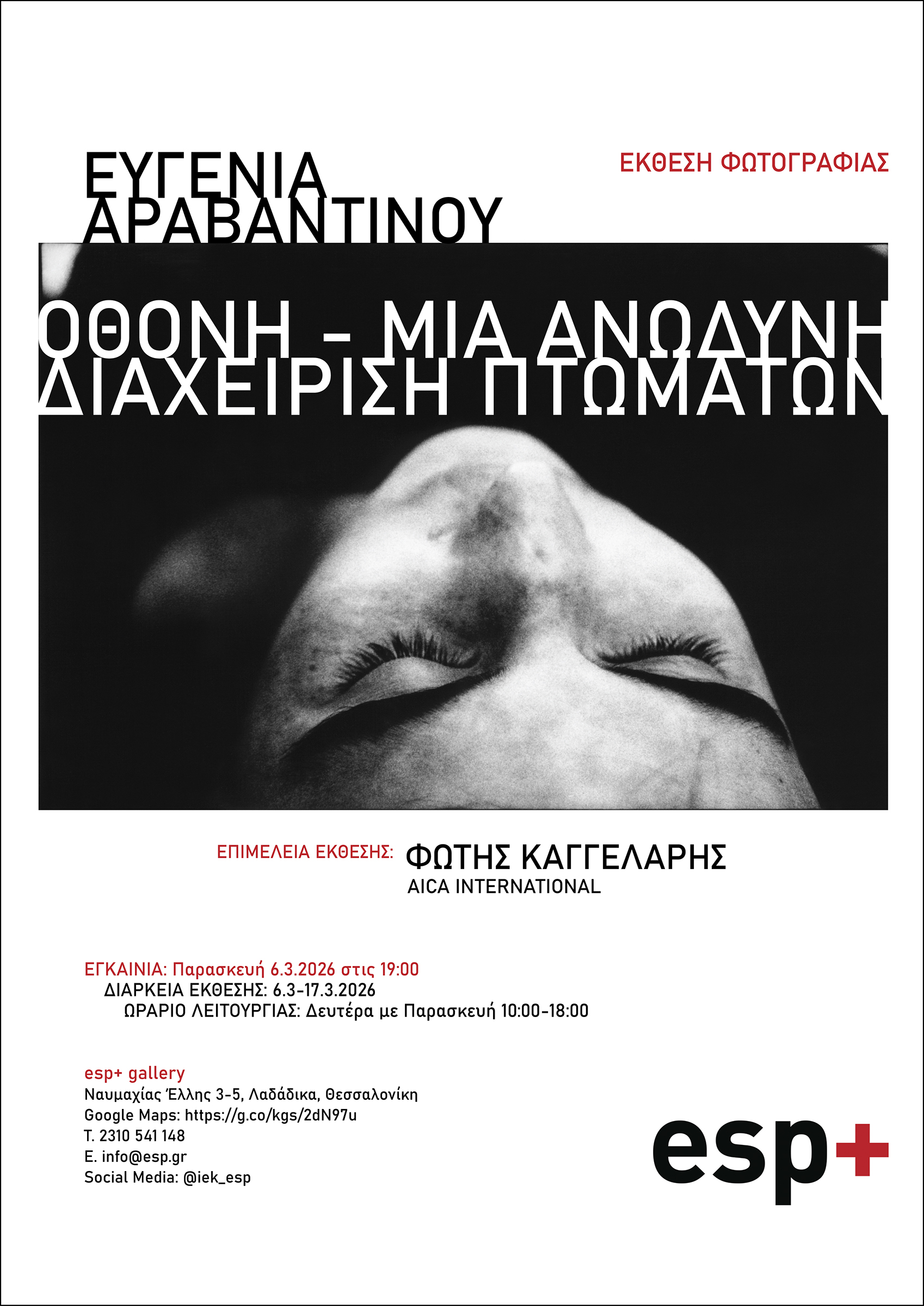 Στη Θεσσαλονίκη, στην αίθουσα τέχνης esp+ gallery, μια νέα έκθεση φωτογραφίας ασχολείται με την ανθρώπινη κατάσταση, οπτικοποιώντας το βιολογικό τέλος ως υπενθύμιση για το επέκεινα. Η φωτογράφος Ευγενία Αραβαντινού παρουσιάζει την πολύ ενδιαφέρουσα σειρά φωτογραφιών: “Οθόνη – Μια ανώδυνη διαχείριση πτωμάτων”. Την έκθεση επιμελείται ο διδάκτωρ ψυχοπαθολογίας και συγγραφέας Φώτης Καγγελάρης.