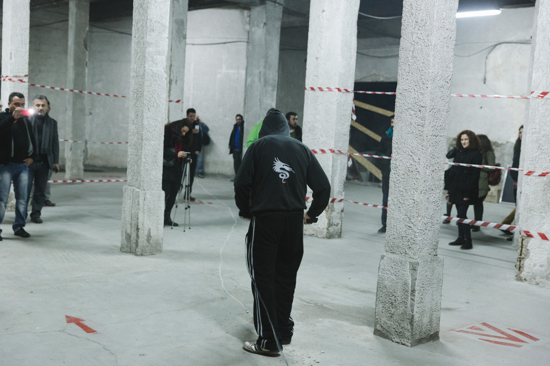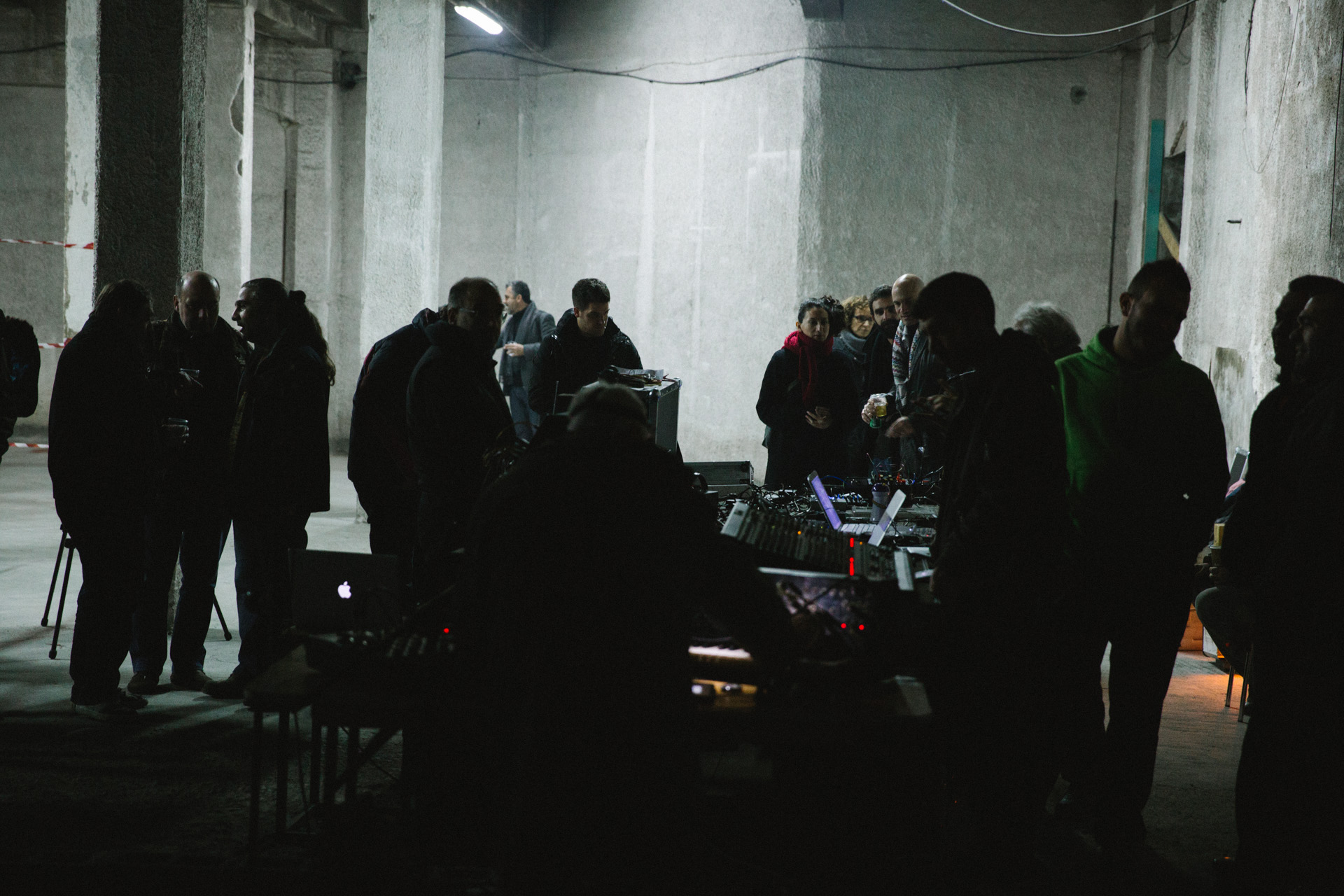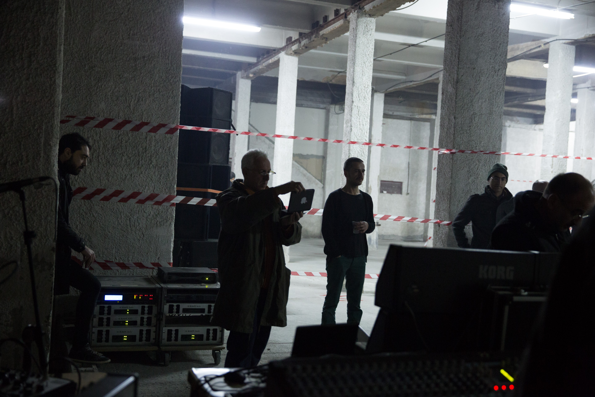 Εντάξει, ας πούμε την αλήθεια: Οι περισσότεροι από τους 60-70 όλους κι όλους παρευρισκόμενους, έχουν έρθει απόψε εδώ, στην πρώτη από τις δύο μέρες του φεστιβάλ, για να ακούσουν κάποιο φίλο ή γνωστό. Και είναι απολύτως κατανοητό. Το να προσελκύσεις κόσμο σε ένα πειραματικό φεστιβάλ μη-μουσικής, μακριά από το κέντρο της πόλης, σε μια περιοχή του Βοτανικού όπου κυριαρχούν οι βιομηχανικές αποθήκες και τα σκυλιά που γαβγίζουν, δεν είναι ό,τι ευκολότερο. Εντούτοις, με τη Knot Gallery, το Μικρό Μουσικό Θέατρο και άλλα σημεία της πόλης που λειτουργούσαν ως στέκια τέτοιων events να μας έχουν αφήσει χρόνους λόγω κρίσης, το Βυρσοδεψείο ταιριάζει απόλυτα με το εγχείρημα. Το περίπου τριών στρεμμάτων κτήριο με τους άβαφους και ασοβάντιστους τοίχους, τις τσιμεντοκολώνες, την μίνιμαλ (ανύπαρκτη) διακόσμηση και την ορίτζιναλ βιομηχανική αίσθηση, υπήρξε κατά το 19ο αιώνα το μεγαλύτερο Βυρσοδεψείο των Βαλκανίων – εξ ου και έχει κριθεί διατηρητέο.