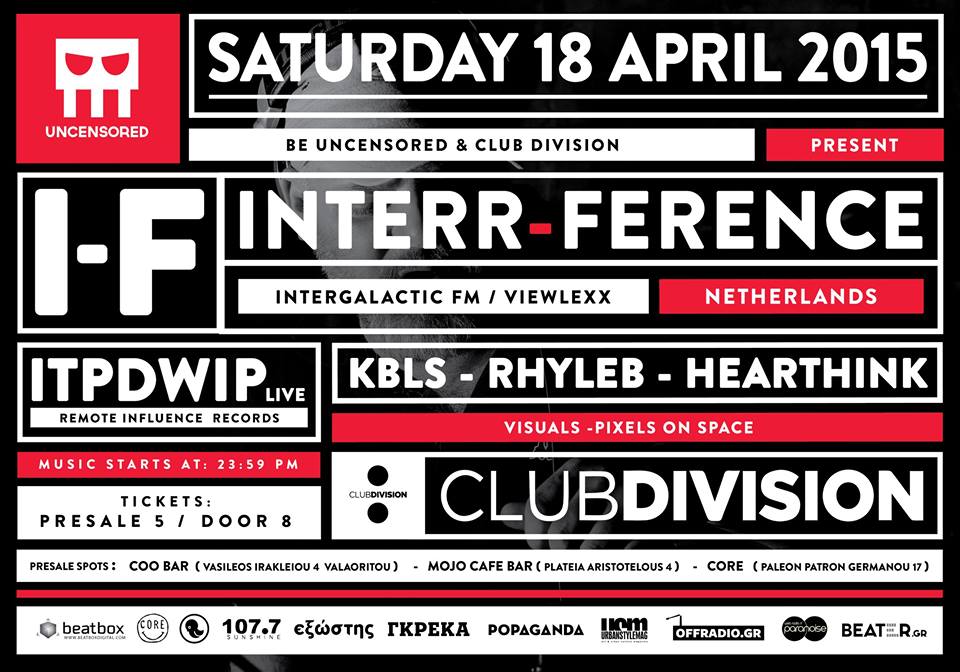 Σάββατο, 18 Απριλίου, Be Uncensored with I-F Club Division, Κατούνη 30, Οι πόρτες ανοίγουν στις 00.00.