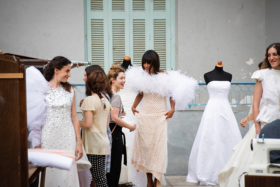 Προετοιμασία με τις… νύφες στα γυρίσματα, στα Καμίνια.