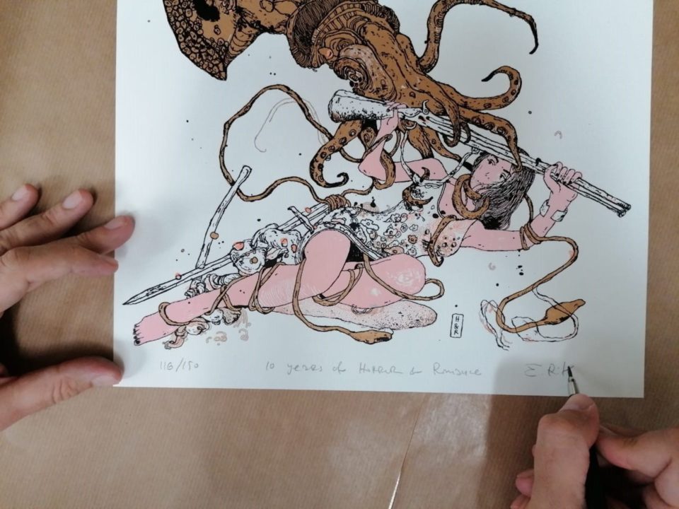 Όσον αφορά τους καλλιτέχνες που θα συμμετέχουν στο Horror & Romance vol. 3, πριν δεσμευθώ για οτιδήποτε θα πρέπει πρώτα να το συζητήσω με το κεφαλόποδο και την κοπέλα που θα πρωταγωνιστήσουν στο εξώφυλλο.