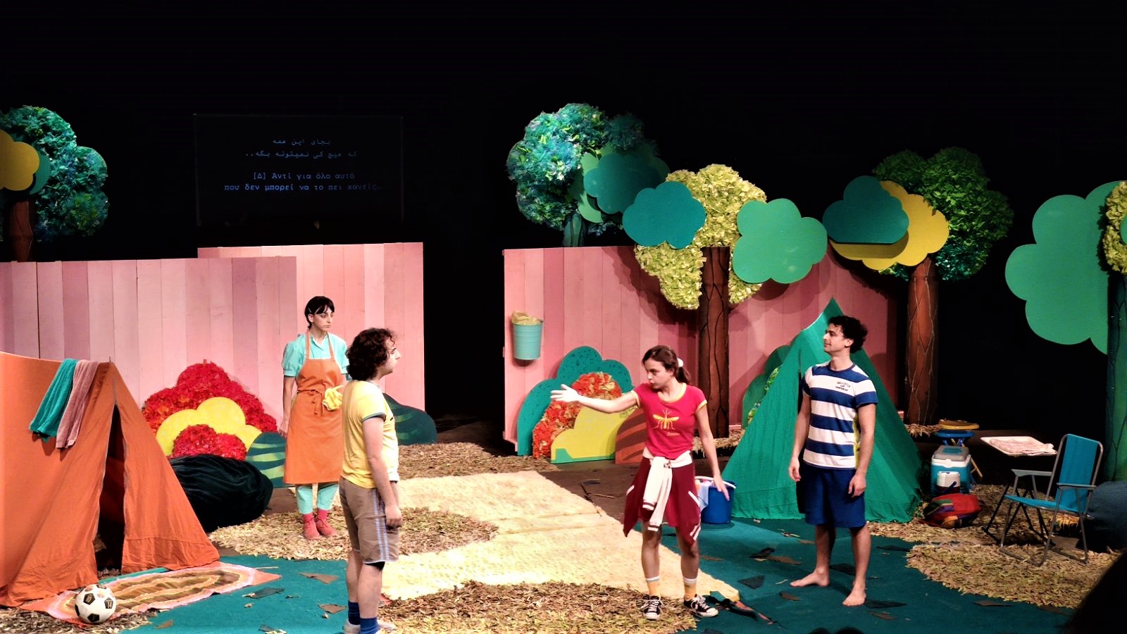 Το μεσημέρι της περασμένης Κυριακής, περιτριγυρίστηκα από παιδικά χαμόγελα που ξεγλιστρούσαν κάτω από τις μάσκες. Ανάμεσα στα παιδιά ήταν και αρκετοί ενήλικες, που παρασύρονταν από τον ενθουσιασμό τους. Το πολύχρωμο σκηνικό όπου εκτυλίσσεται η υπόθεση, απεικονίζει ένα camp κατασκηνωτών στο οποίο βρίσκεται ο Νουριάν, ένας μετανάστης από το Ιράν, μαζί με τον 13χρονο γιο του, απολαμβάνοντας τις διακοπές τους.