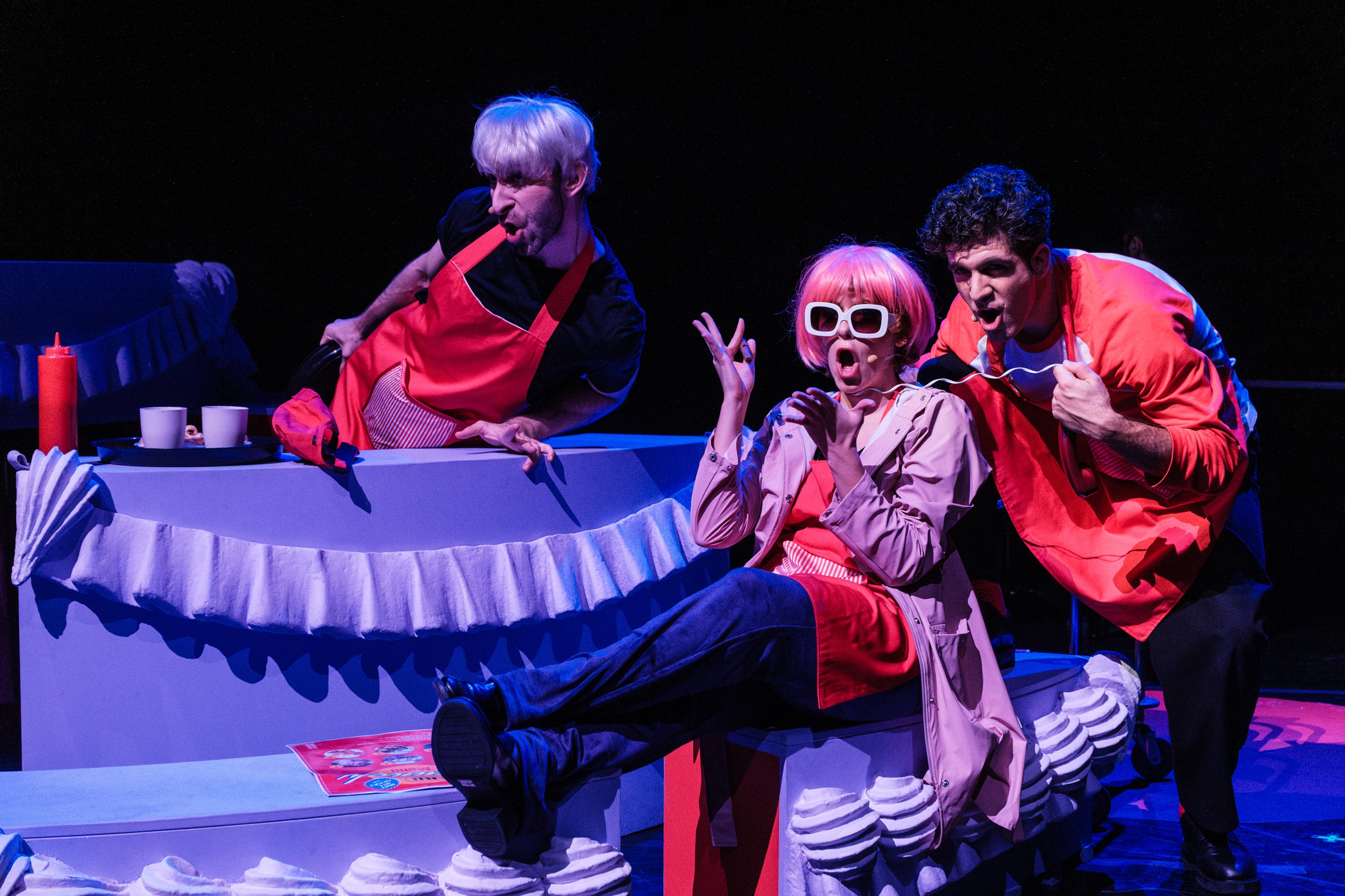 Στην Εναλλακτική Σκηνή της Λυρικής, μέσα σε μια τεράστια τούρτα που συνεχώς μεταμορφώνεται, οι Πάρις Παρασκευάδης, Αργύρης Λάμπρου και Δανάη Βασιλοπούλου δεν ερμηνεύουν απλώς ρόλους, φιλοξενούν στο σώμα τους τη νεανική αγωνία του Τζόναθαν Λάρσον, την αγωνία ενός ανθρώπου που έγραφε με την πλάτη στον τοίχο, με τον χρόνο να τον κυνηγά, με το όνειρο να τον δαγκώνει και να τον λυτρώνει ταυτόχρονα. Κι είναι εντυπωσιακό πώς, μέσα από τη δική τους ενέργεια, το έργο μοιάζει να μιλά για το σήμερα, για μια γενιά που μεγαλώνει με deadlines, ανασφάλειες και αναβολές· μια γενιά που θέλει να προλάβει.
