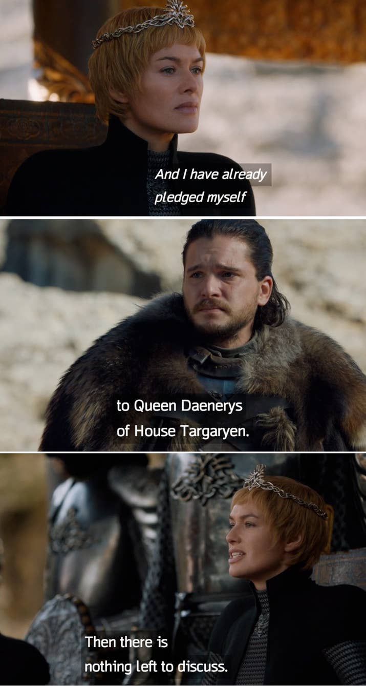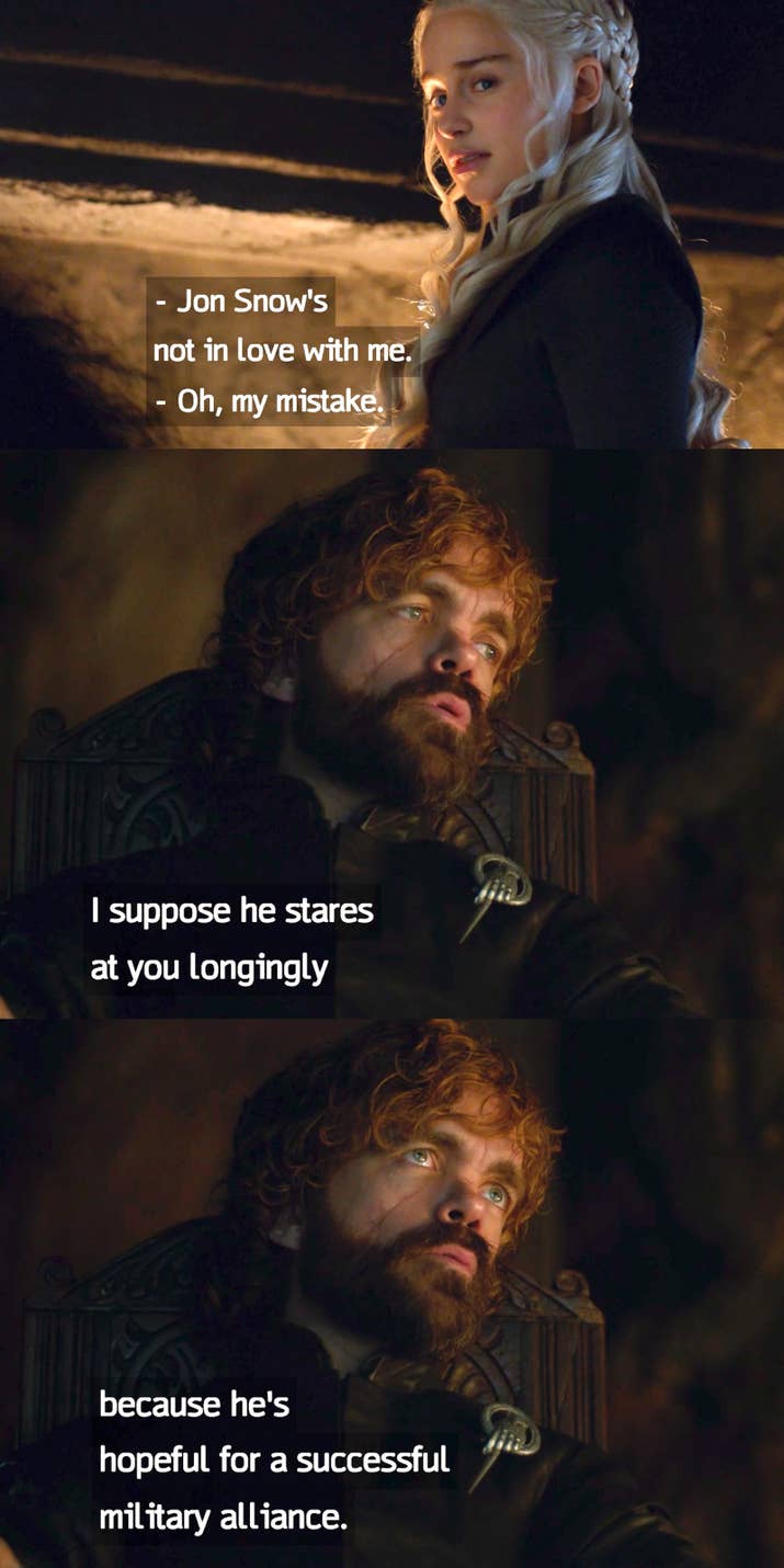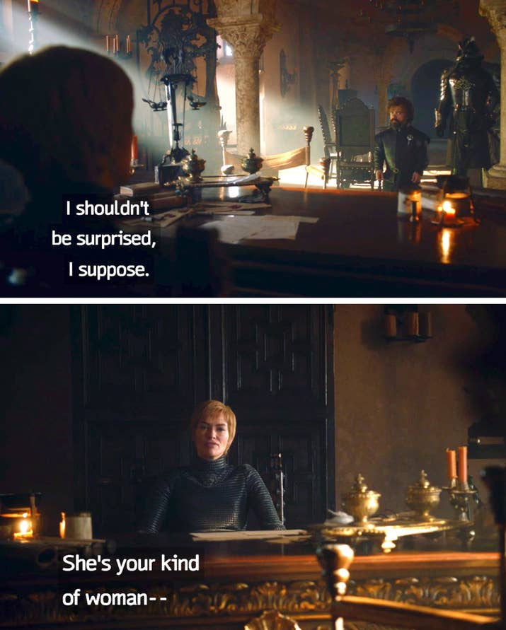 Τί συζητήθηκε ανάμεσα στα δυο αδέρφια και δεν το είδαμε εμείς; Θα μπορούσε αυτή η συζήτηση να είναι και ο λόγος που ο Τύριον κοντοστέκεται και παρατηρεί τον Τζον που μπαίνει στο δωμάτιο της Νταινέρυς;