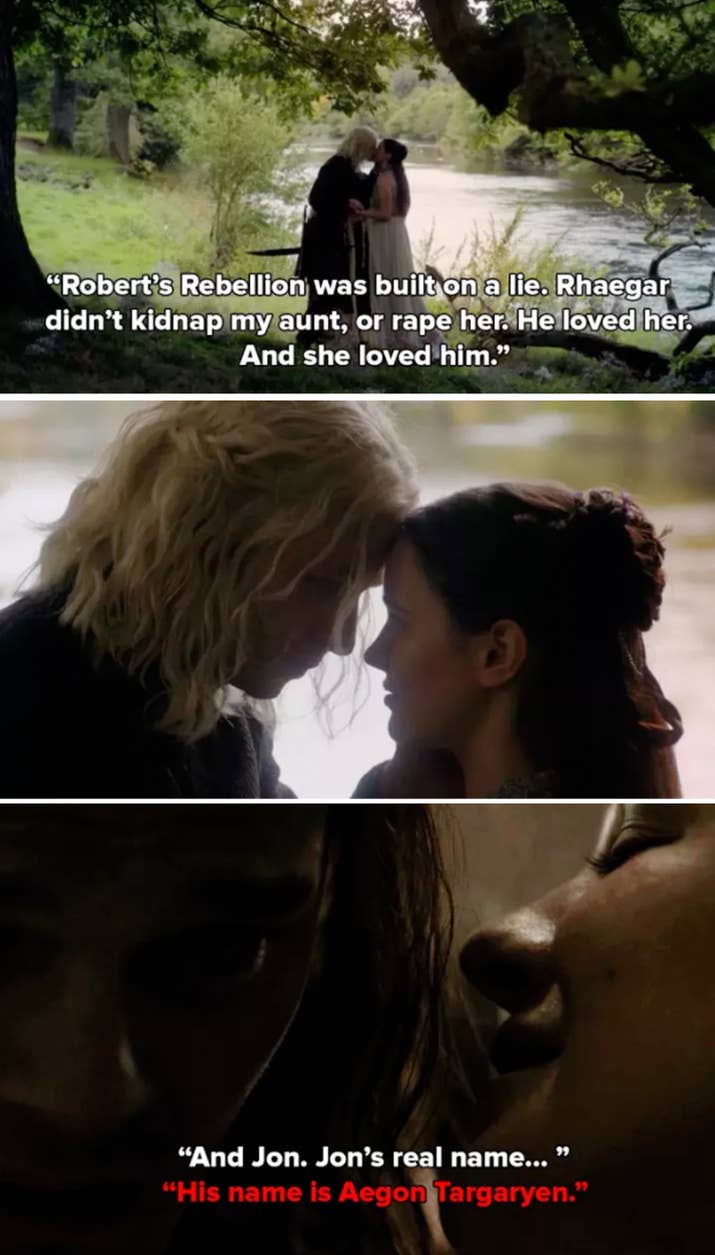 Το σημαντικότερο γεγονός, αυτό που περιμέναμε όλοι εδώ και 7 σεζόν, αποκαλύφτηκε από τον Μπραν (που όλα τα ξέρει αλλά δεν λέει τίποτα). Ο Τζον είναι νόμιμος γιος του Ρέυγκαρ Τραγκάρυεν και της Λυάννα Σταρκ, κάτι που τον κάνει νόμιμο διάδοχο του θρόνου. Και όσο ο Μπραν αφηγούνταν την πραγματική ταυτότητα του Τζον στον Σάμγουελ Τάρλυ, ο βασιλιάς στου Βορρά έμπαινε στο δωμάτιο της Βασίλισσας με τα δεκάδες προσωνύμια και λίγα λεπτά αργότερα τους βλέπουμε να κάνουν έρωτα. Μπορεί για τους Ταργκάρυεν η αιμομιξία να είναι κάτι συνηθισμένο, ο τίμιος και μεγαλωμένος με την ηθική των Σταρκ όμως, Τζον, δεν ξέρουμε πως θα αντιδράσει σε αυτά τα νέα.