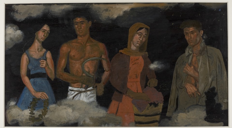 Στρατιώτης με κόκκινο τραντάφυλλο στο πάτωμα (κάτω), Ο Ευγένιος Σπαθάρης άγγελος (δεξιά), έργα της δεκαετίας του ’40.