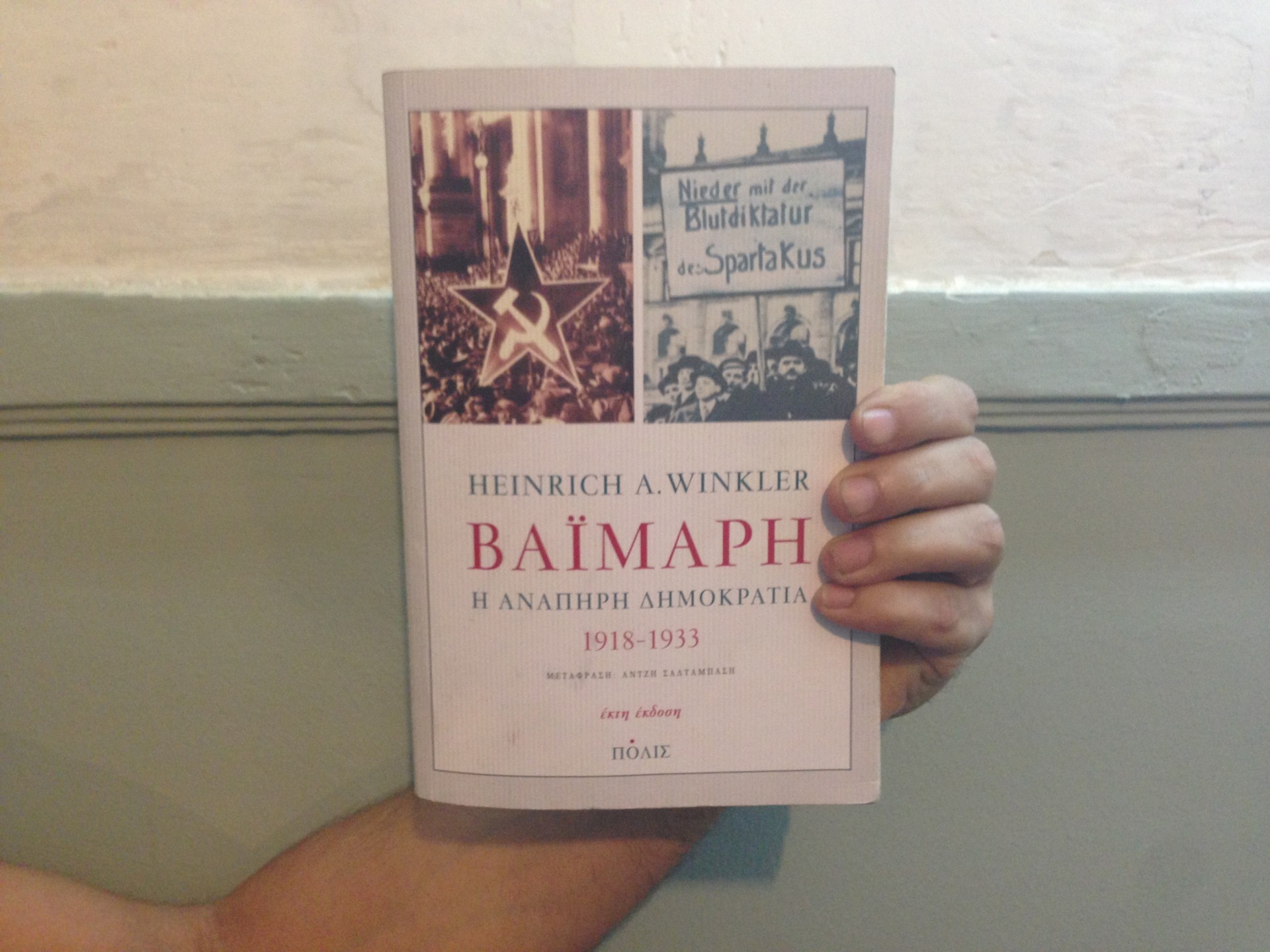Το βιβλίο του καθηγητή σύγχρονης ιστορίας Χαίνριχ Α. Βίνκλερ, Βαϊμάρη: Η ανάπηρη δημοκρατία 1918-1933, εκδόθηκε στην Ελλάδα το 2011. Περιγράφει την εύθραστη ζωή της Δημοκρατίας της Βαιμάρης από την γέννηση της το 1918, μετά την ήττα στον πόλεμο, μέχρι το θάνατο της το 1933, όπου ο πρόεδρος του Ράιχ Χίντεμπουργκ αναθέτει τη θέση του Καγκελαρίου στον Χίτλερ.