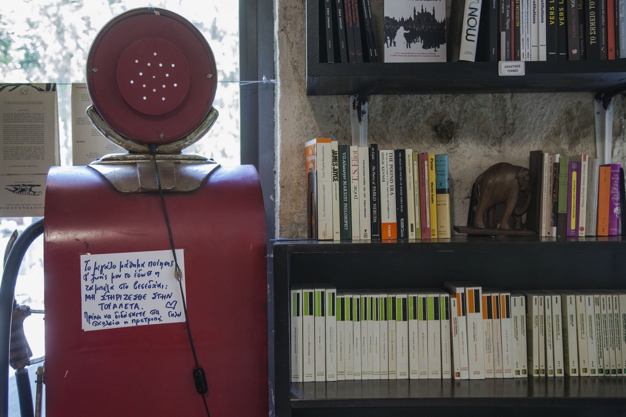 Το βιβλιοπωλείο είναι στα Εξάρχεια. Πόσο επηρεάζεται από τον χώρο; Καθόλου. Είναι εδώ γιατί εδώ έχω μεγαλώσει και είναι η γειτονιά μου, η γειτονιά μας. Στον τόπο που αγαπάς θέλεις να προσφέρεις το καλύτερο γι’ αυτόν. Για εμένα ήταν πάντα πρόβλημα ότι δεν υπήρχε ένα καλό βιβλιοπωλείο κοντά.