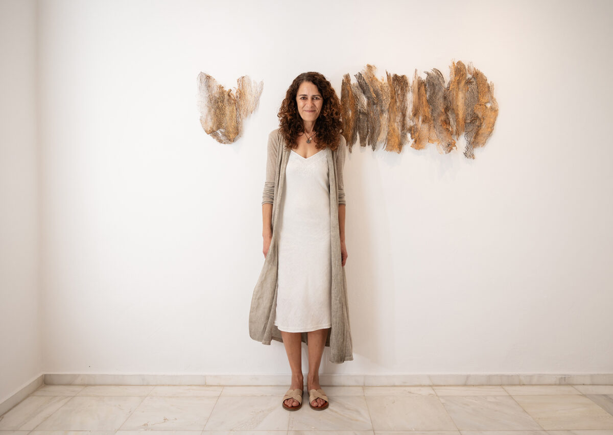 Κατερίνα Κατσιφαράκη, Χωρίς τίτλο, ιστοί φραγκοσυκιάς, φύλλα χρυσού. Παραχώρηση της καλλιτέχνιδας και της CITRONNE Gallery.