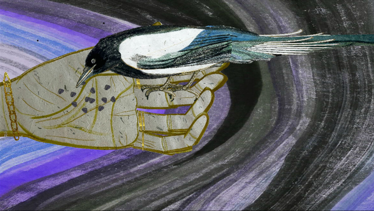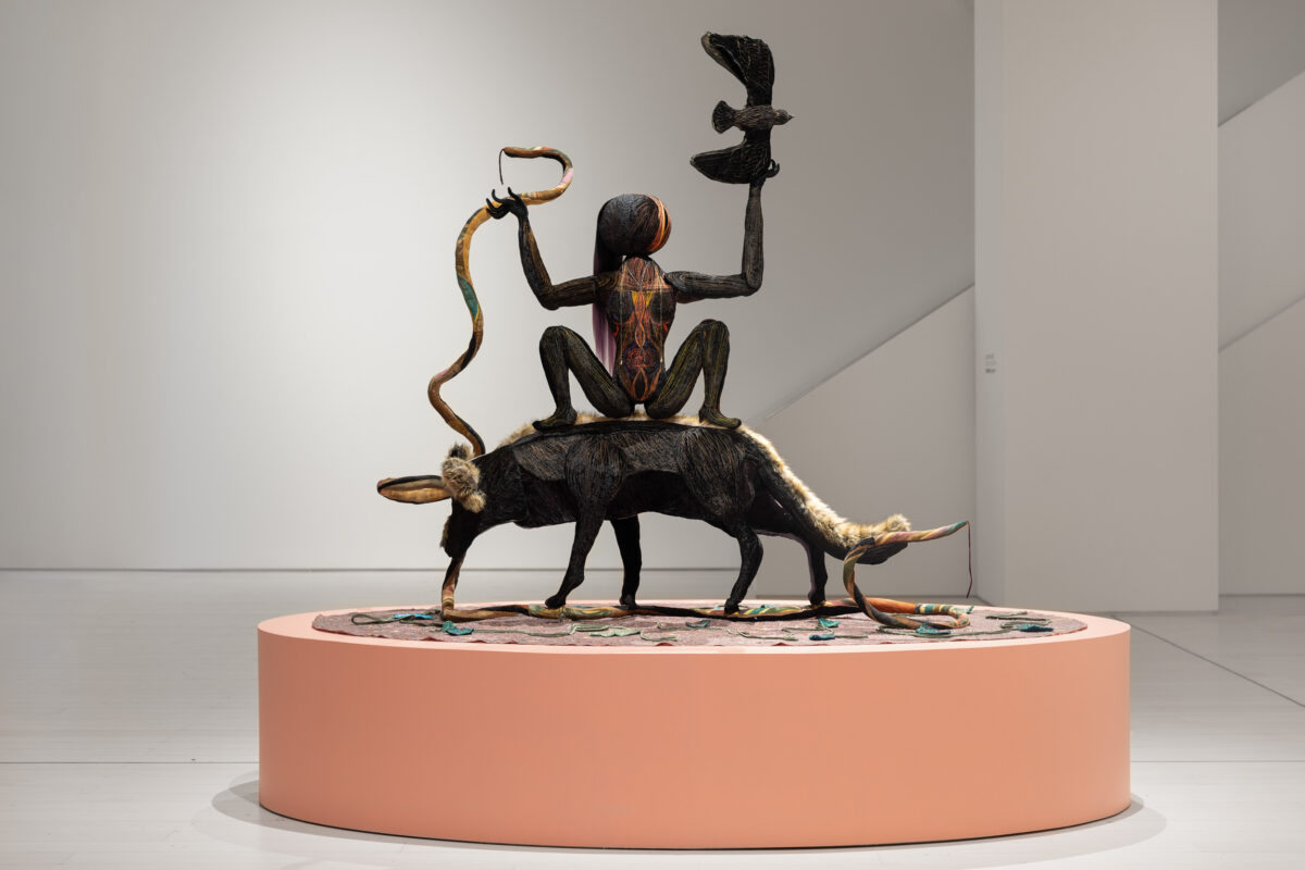 Στην εγκατάσταση υπάρχει επίσης ένα τρισδιάστατο έργο από ύφασμα που ανακαλεί τη φυσική παρουσία μιας Χίμαιρας: από τη μια του πλευρά συγκεντρώνεται ένας σωρός από διακριτά ανθρώπινα και ζωώδη στοιχεία – λύκος, γυναίκα, πουλί και φίδι αναπτύσσονται μέσα στον φυσικό χώρο της έκθεσης. Από την άλλη, οι μαύρες σκιές τους υποδηλώνουν πως όλα τους μοιράζονται την ίδια φυσική υπόσταση, την ίδια ενέργεια – πως είναι όλα κομμάτια του ίδιου ζωντανού σχήματος.