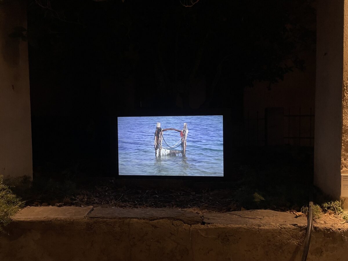 Μια καρέκλα, που στην πραγματικότητα είναι ένας παράκτιος πάσσαλος για να δένουν οι βάρκες. Πάνω του είναι προσκολλημένα πολλά διαφορετικά σχοινιά, δίχτυα και διάφορα άλλα απομεινάρια. Ίχνη, σημάδια της πορείας και των μετακινήσεων διαφορετικών ανθρώπων μέσα στη θάλασσα στο πέρασμα του χρόνου. Το κάθε απομεινάρι είναι και μια διαφορετική ιστορία κάποιου ανθρώπου μέσα στη ζωή. Είτε φαίνεται καθαρά, είτε διακρίνεται κάποιο ίχνος του, υπάρχει, είναι αληθινό, και κινείται αδιάκοπα, αλλάζει, φθείρεται και γίνεται ένα με τη ροή του νερού.