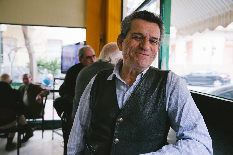 Προς τιμήν του, δεν κωλώνει να μιλήσει για τις αδυναμίες του, για πλευρές που σε άλλους καλλιτέχνες μένουν τεχνηέντως κρυφές: «Το πάθος μου το μεγάλο εμένα ήτανε ο τζόγος. Τον έχω κόψει εδώ και τριάντα χρόνια, αλλά τότε έπαιζα. Κι όποτε έριχνα μια καλή ζαριά, είχα και τις κρυψώνες μου». Περιμένει δυο δευτερόλεπτα, γνωρίζοντας πως μου έχει τραβήξει την προσοχή και συνεχίζει: «Ξέρεις ποιες ήταν οι κρυψώνες μου…». «Όχι» απαντάω. «Άκου να δεις… Τη δεκαετία του ’70, επειδή έμενα στη λεωφόρο Βουλιαγμένης, από την αρχή της Βουλιαγμένης μέχρι τη Γλυφάδα κάτω, είχα κάποιες πέτρες. Αυτές τις έλεγα κρυψώνες. Όταν έφερνα λοιπόν την καλή τη ζαριά και μου περισσεύσανε, τακ, έβαζα κάτι κάτω απ’ την πέτρα. Κι όταν ερχόταν η άσχημη, πήγαινα και τα ‘παιρνα. Μία στην αρχή της οδού, μία στην Πλατεία Καλογήρων και μία άλλη στην Αλίμου. Βέβαια η Βουλιαγμένης δεν ήταν όπως είναι τώρα. Ψιλοχωράφια, ψιλοτέτοια… Σήμερα παίζω ακόμα κανένα ταβλάκι που και που. Γιατί οι φίλοι μου είναι του καφενείου – λίγοι είναι της καφετέριας. Με αρχηγείο βέβαια το καφενείο των Πετραλώνων. Εκεί που θα σε πάω».