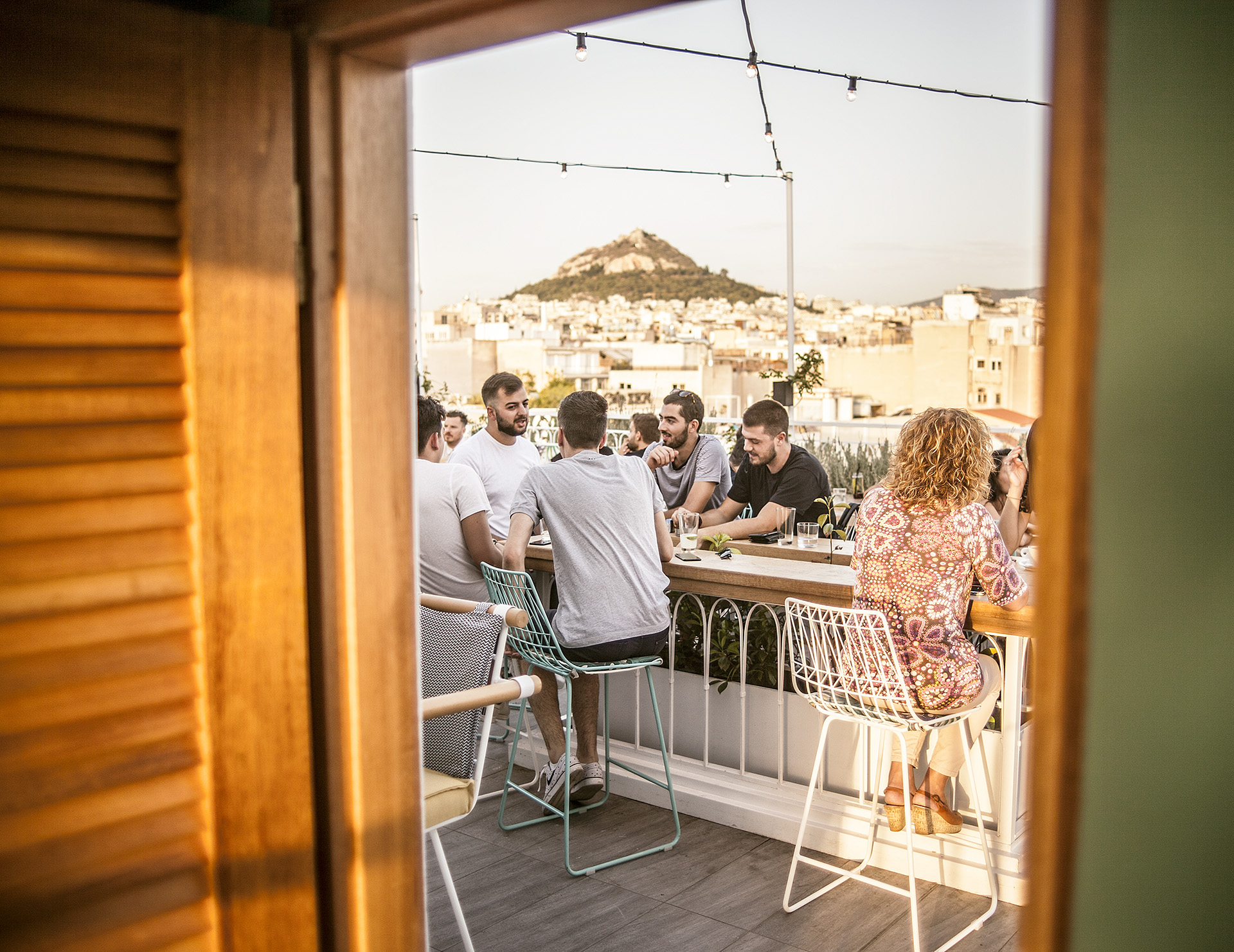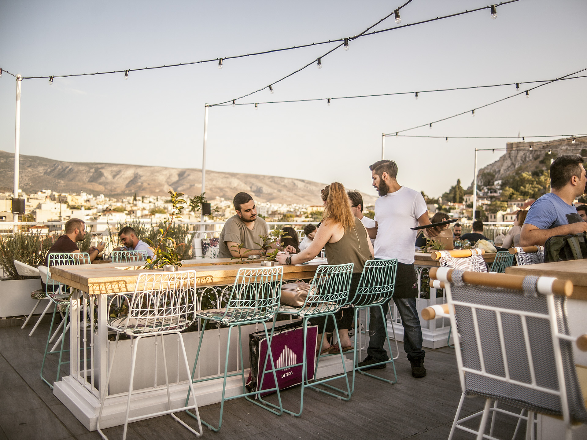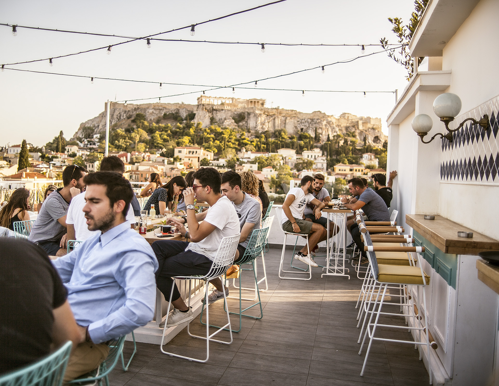 Ένα χαρακτηριστικό της πιάτσας εξόδου στο Μοναστηράκι είναι τα τελευταία χρόνια τα μαγαζιά που κοιτάζουν την Αθήνα από ψηλά, οι ταράτσες του κέντρου με θέα προς τους λόφους της Ακρόπολης και του Λυκαβηττού.