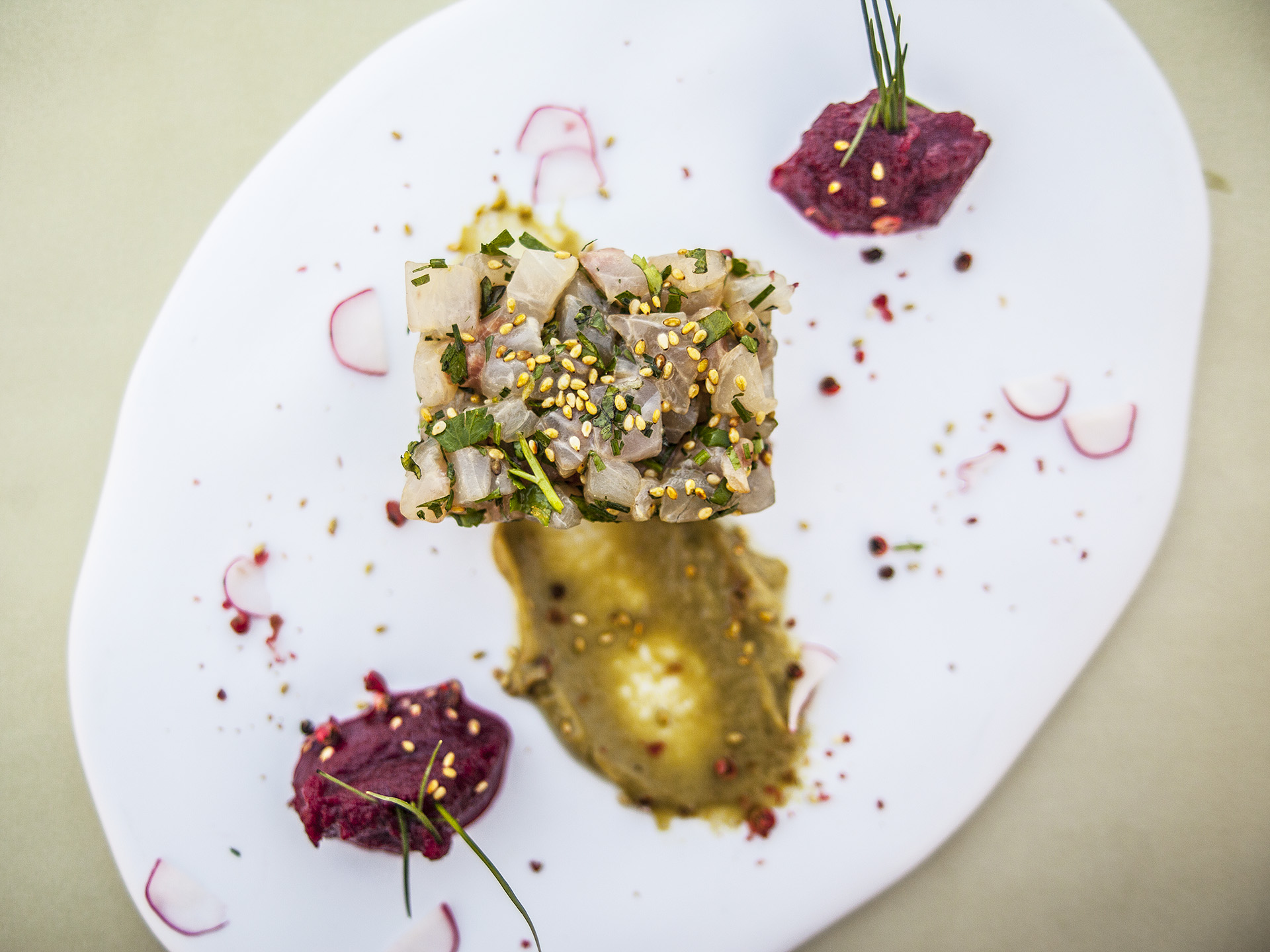 Ταρτάρ από λαυράκι, με yuzu και σχοινόπρασσο