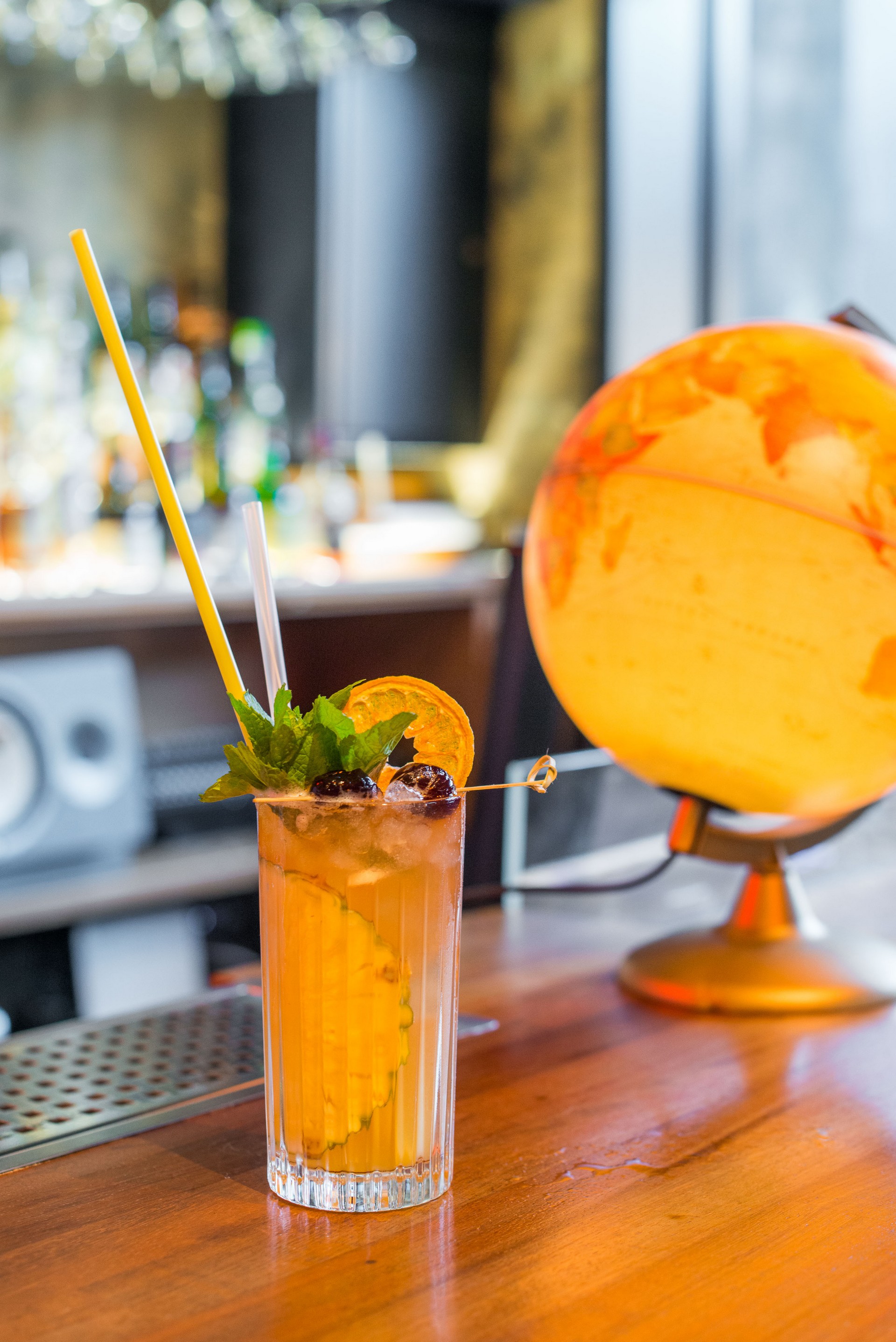 Garnish: Mint, Dried Orange,  Amarena Cherry