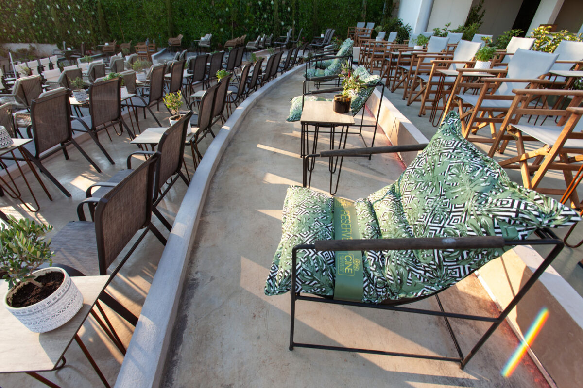 Το πιο έντονο χαρακτηριστικό αυτού του πολύ όμορφου και καλοσχεδιασμένου κινηματογράφου είναι το αμφιθεατρικό του στήσιμο. Τα αρώματα του βασιλικού και της λεβάντας κατακλύζουν τον χώρο και δημιουργούν μια ατμόσφαιρα που ταξιδεύει τον θεατή σε μία άλλη εποχή. Ο εξοπλισμός είναι τελευταίας τεχνολογίας για την καλύτερη δυνατή προβολή κάθε ταινίας και η άνεση του θεατή είναι η απόλυτη προτεραιότητα της ομάδας του Cine Πολεμικό Μουσείο. Επίσης, είναι πολύ συνειδητή επιλογή τα μεγάλα κενά ανάμεσα στα τραπεζοκαθίσματα για να είναι καθολικά προσβάσιμο σε ΑμεΑ. «Ήταν στο μυαλό όλης της ομάδας να πραγματοποιήσουμε τις ανάγκες και τις επιθυμίες μας ως θεατές και φίλοι των θερινών. Στο δικό μας θερινό, ο θεατής με την είσοδο του έχει ένα welcome drink και θα απολαμβάνει την ταινία με εξαιρετική εικόνα στη τεράστια οθόνη μας, με καταπληκτικό ζωντανό ήχο, σε αμφιθεατρικό υψηλής αισθητικής χώρο, διαλέγοντας το κάθισμα που του ταιριάζει. Προτεραιότητα μας είναι η πρόσβαση και παροχή υψηλών υπηρεσιών σε άτομα με αναπηρία», μας ενημερώνει ο Γιώργος Τσιτσόπουλος. Έχει χωρητικότητά 220 θέσεων, μεταξύ των οποίων τοποθετούνται πολλά τραπέζια για μεγαλύτερη άνεση.