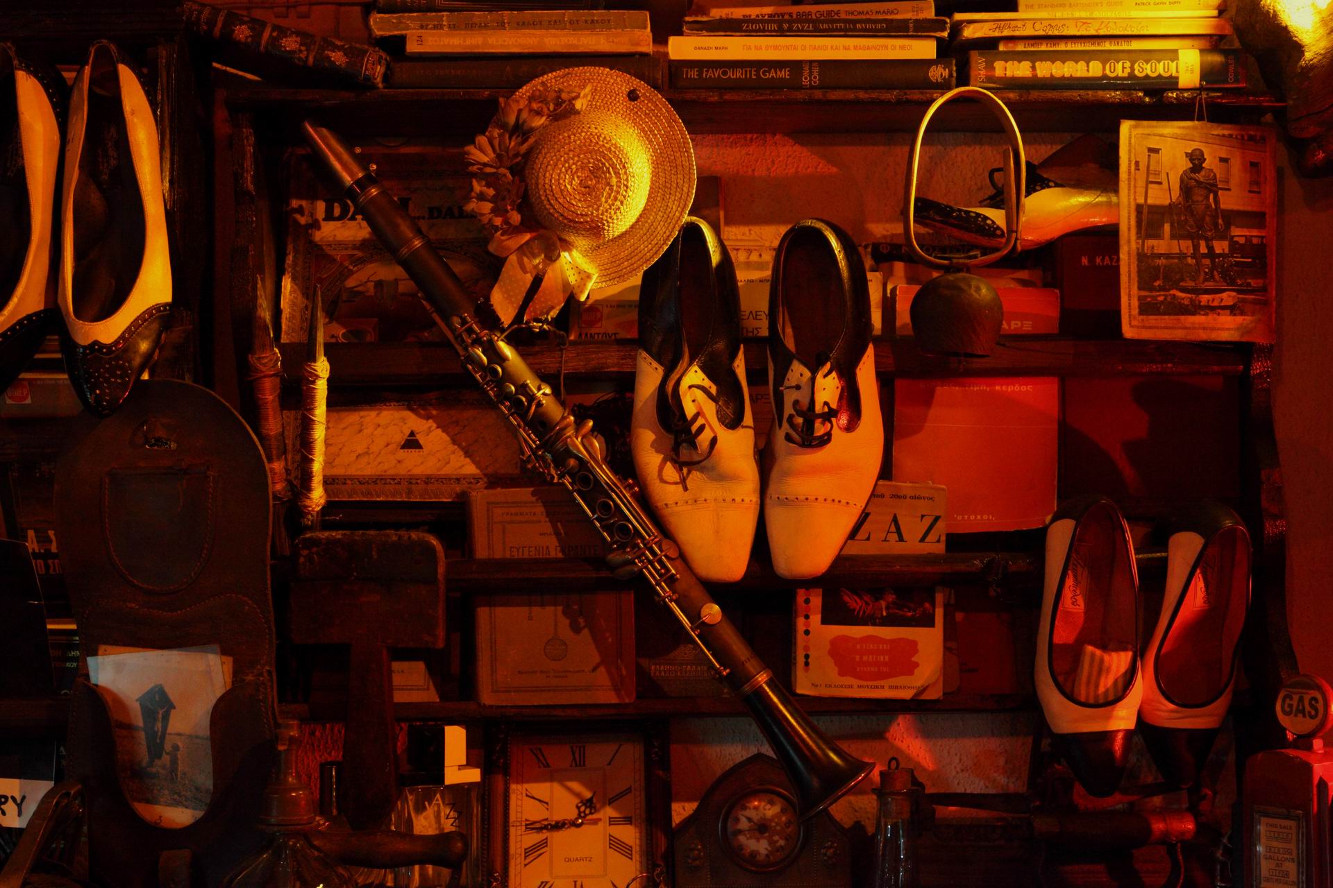 Το κάθε αντικείμενο που υπάρχει εδώ έχει τη δική του ιστορία, η λύρα είναι δώρο του Ψαραντώνη (ήταν πολύ καλοί φίλοι), το θυροτηλέφωνο που βλέπεις μπαίνοντας είναι από τη Γαλλία και είναι γεμάτο με ονόματα καλλιτεχνών που έμεναν στην ίδια πολυκατοικία. Επίσης, όταν ο θείος είχε φτάσει στη Νέα Ορλεάνη ήθελε να μπει σε ένα στέκι μαύρων. Μια μέρα κατέβηκε σε ένα υπόγειο με μπιλιάρδα, με το που τον είδαν τον πήραν στο κυνηγητό. Του πέταξαν μια μπάλα μπιλιάρδου -ευτυχώς δεν τον πέτυχε- χτύπησε στο πεζοδρόμιο και του ήρθε στα πόδια. Την πήρε μαζί του και την έβαλε στο μπαρ.