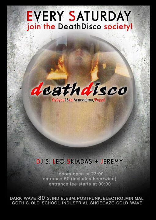 Aμέσως μετά την πολυαναμενόμενη συναυλία των She Past Away ξεκινάει ένα ακόμα Death Disco Society party με τους Leo Skiadas και Xristos Ieremias στα decks να διαλέγουν τα καλύτερα new wave, 80’s, EBM, post punk, minimal, indie, gothic, electro τραγούδια από τα 80’s μέχρι και σήμερα!