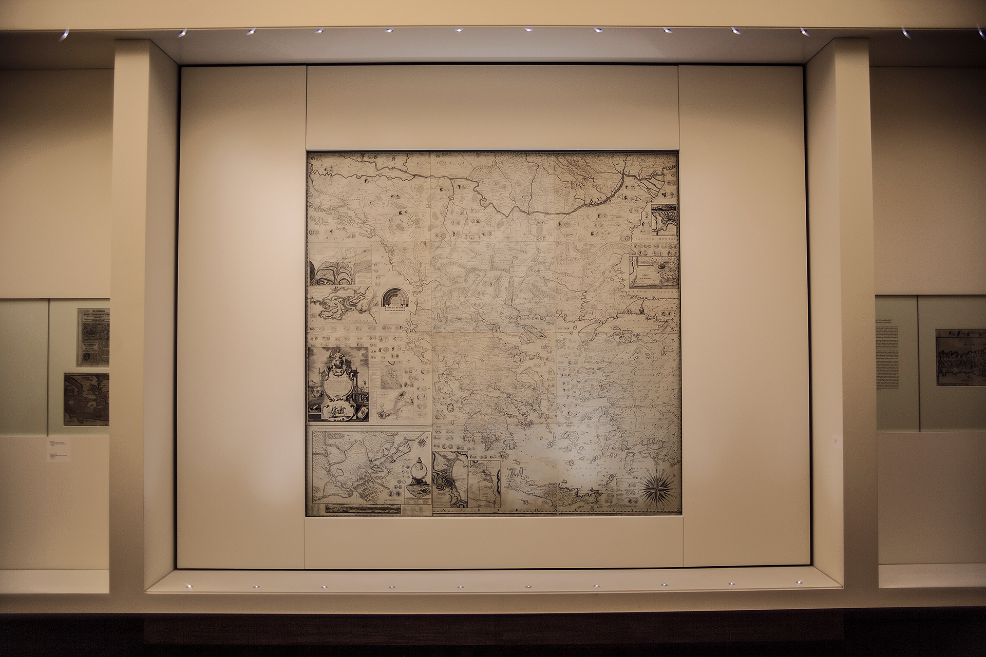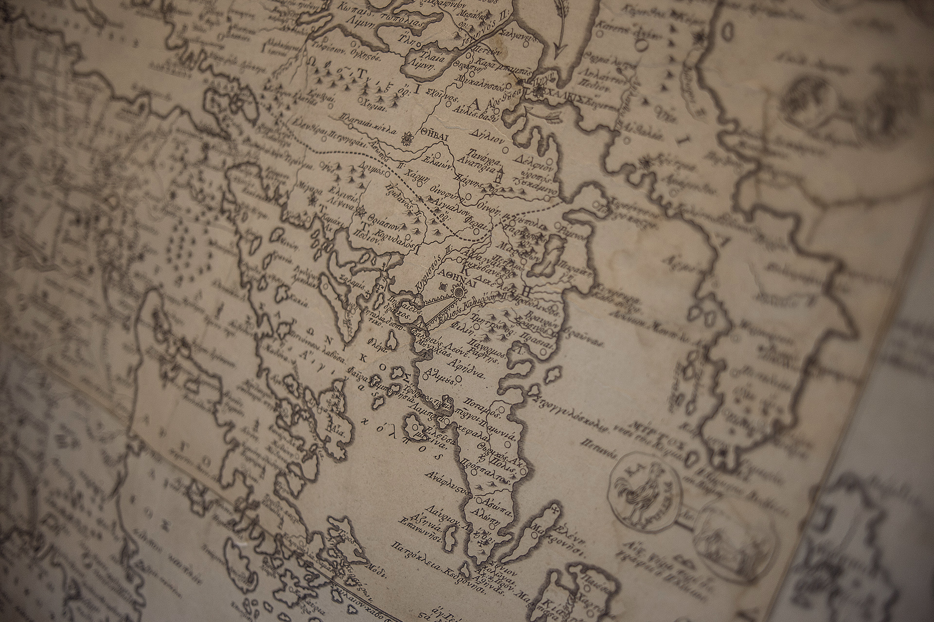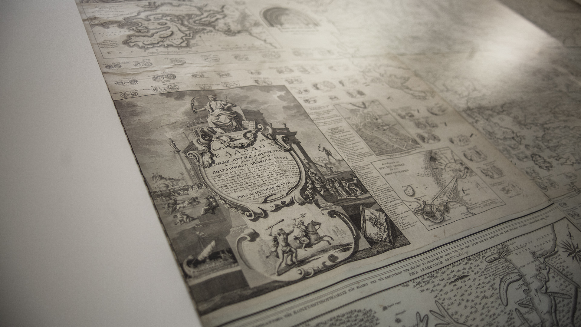 Ένα σημαντικό έκθεμα που θα συναντήσει κανείς στο Αρχείο είναι ένα αυθεντικό αντίτυπο της Χάρτας του Ρήγα Φεραίου σε άριστη κατάσταση. Εμπνευσμένος από το πνεύμα της γαλλικής επανάστασης και τη δυτική Ευρώπη στα τέλη του 18ου αιώνα, ο Ρήγας τυπώνει μια σειρά από χάρτες, μεταξύ των οποίων και τη Μεγάλη Χάρτα της Ελλάδος, έναν χάρτη διαστάσεων 2,07 x 2,07 μέτρα, που αποτελείται από επιμέρους τμήματα, που είναι γεμάτος από ιστορικές πληροφορίες, επιπεδογραφίες, έναν ανεμοδείκτη και πληθώρα αρχαίων νομισμάτων.